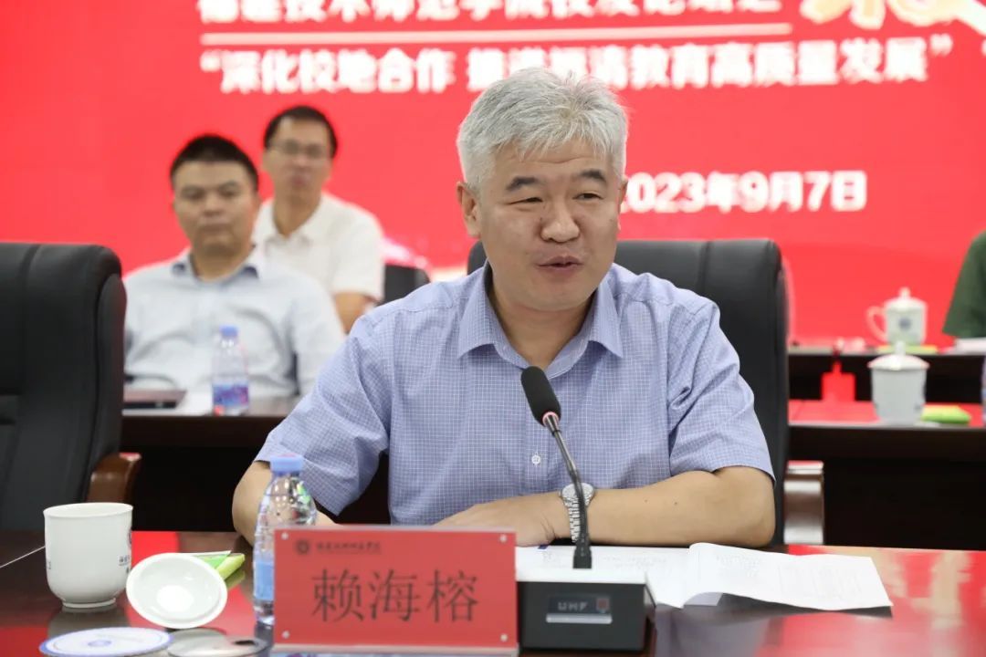 9月7日下午,我校校友论坛之“深化校地合作 推进福清教育高质量发展”校长论坛在五马山校区林联兴科技楼12层集贤厅举办。校党委书记赖海榕出席活动并讲话,校党委委员、副校长商光美代表学校致开幕词。在福清市教师进修校、职校、中学等担任党委书记、校长职务的30多位校友代表参加论坛。本次活动由校改革与发展委员会成员、正处级组织员、校友会会长何坤基主持。