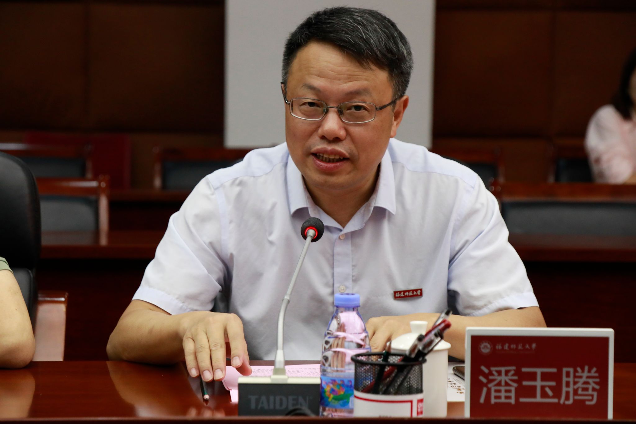 潘玉腾书记在致辞中表示,两校有着长期的历史交集、丰富的共同记忆、深厚的情感情谊。自福建技术师范学院独立设置3年多来,两校情感情谊一如既往、交流往来从未中断,在人才培养、科学研究、学科建设等诸多领域持续深入开展合作,有力有效推动两校协同发展。他指出,面对教育强国强省建设的新形势新挑战,聚焦双方争创一流的目标任务,两校不忘本来、着眼未来,按照“面向急需、突出重点、共建协作”的总体思路,围绕改革发展重点领域,着力深化务实合作,可谓正当其时、恰逢其势。福建师范大学将与福建技术师范学院一道,赓续深厚情谊,落实协议内容,积极构建更加全面、更加紧密、更加务实的合作关系,推动两校合作迈向更宽领域、更深层次、更高水平,促进两校携手共进、合作共赢,共谱事业发展新篇章。他要求福建师范大学各有关单位认真落实两校磋商建立的会商协调机制和对接落实机制,加强沟通、增进互动,扎实推进协议内容转化成为具体合作项目,以项目牵引促进合作升级,以真抓实干确保合作实效,全力推动两校协同发展走深走实。
