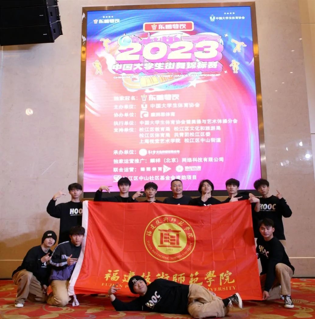 我校街舞代表队由李凤成担任领队,张志扬、杨毅宁担任教练。获奖成员包括由体育学院毛小伟、郑明锟、黄勇超、陈梓杰、纪尚堃、李少雄、林昌杰、林世铭、陈轩。