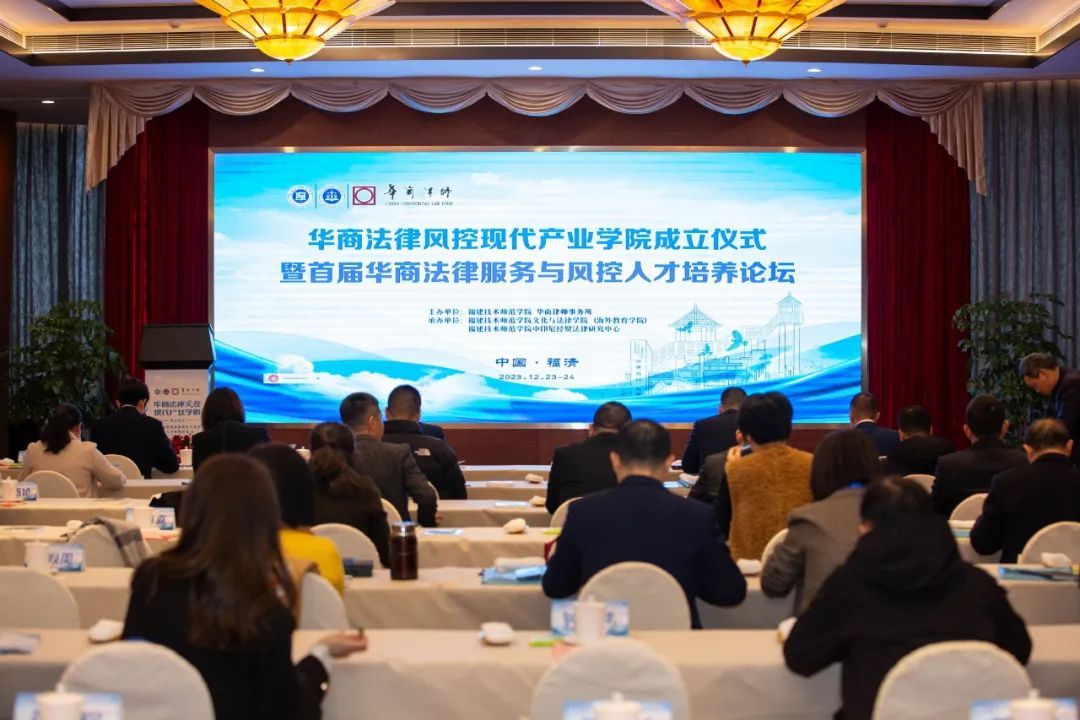 12月24日,华商法律风控现代产业学院成立大会暨首届华商法律服务与风控人才培养论坛在福清召开。华商律师事务所首席合伙人、主任高树,华商(泉州)律师事务所发展战略委员会主任、执行合伙人张选举,华商律师事务所合伙人 、资本市场与证券法律专业委员会委员游锦泉,华商律师事务所粤港澳大湾区律师、香港律师周立新,华商律师事务所业务运营中心主任陈美婷、运营中心专员宋星颖,以及省内多家律师事务所和大中型企业代表出席成立大会。我校教务处、科研处、继续教育学院负责人和文化与法律学院党政负责人、师生代表等参加了会议。
