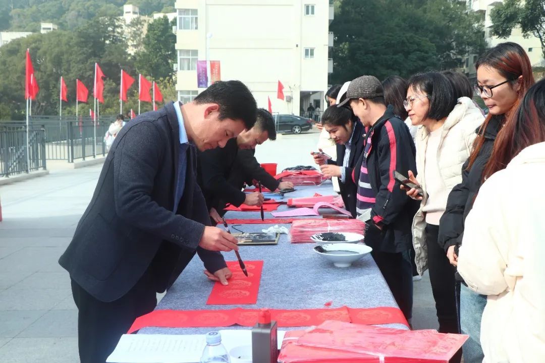 历时近3小时的现场创作,9位民盟书画名家集体创作了“烂漫春光艳八闽”等多幅山水画作和书法作品,并捐赠给我校。我校书画名师也分别在五马山校区赫曦广场和石竹山工艺美术研究院书写300多副春联和200多“福”字赠送师生,将节日的祝福与浓浓的年味送到师生手中。(校党委统战部 校工会)