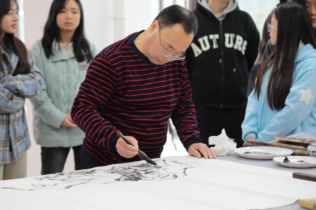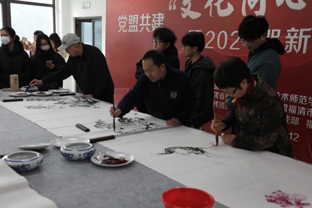 此次活动邀请了福建省画院原院长、民盟中央美术院副院长、福建分院院长、福建省民盟书画学会会长郭东健等9位书画名家和我校6位书画名师现场创作。