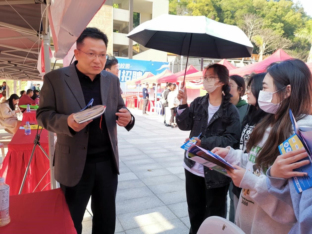 为抢抓春季招聘黄金期,3月20日下午,我校于五马山校区日新园广场举办“万企进校园”——2024届毕业生春季校园招聘会。校党委副书记林海峰深入招聘会现场指导工作。