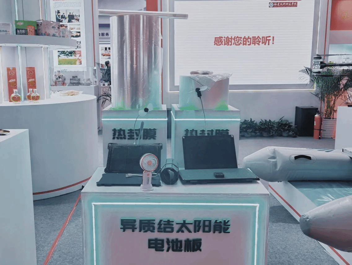实物展示:材料与包装工程学院教师研发的单一材质材料,替代传统的热封膜;电子与机械工程学院双碳科普宣传活动展品太阳能电池板系列