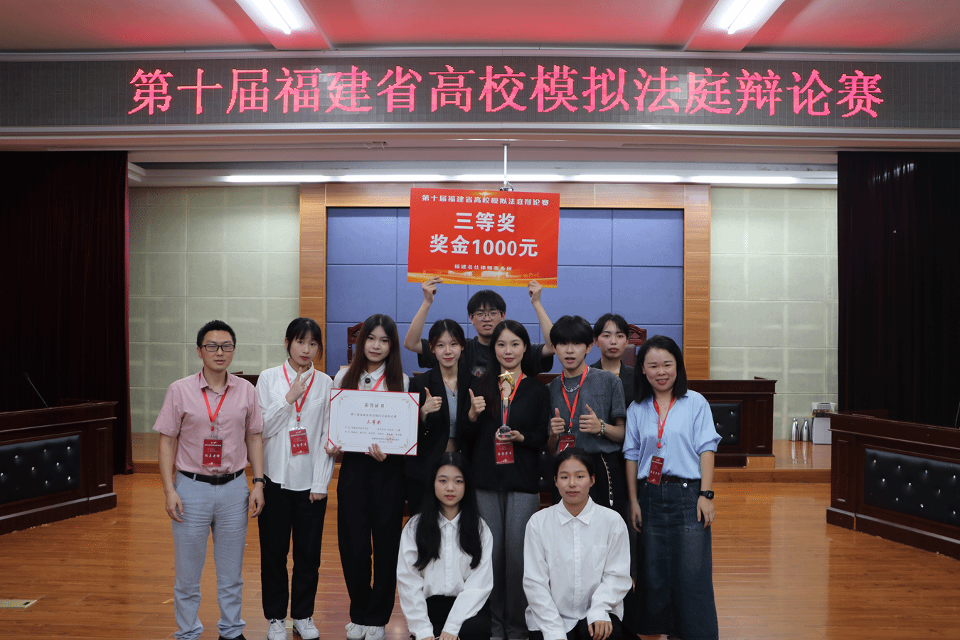 6月2日,第十届福建省高校模拟法庭辩论赛圆满落幕。本次大赛由福建省教育厅主办,福建师范大学承办,福建名仕律师事务所协办,共吸引了福州大学、集美大学等省内15所高等院校学子参与。我校代表队荣获本次大赛三等奖。
