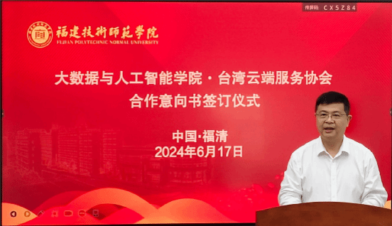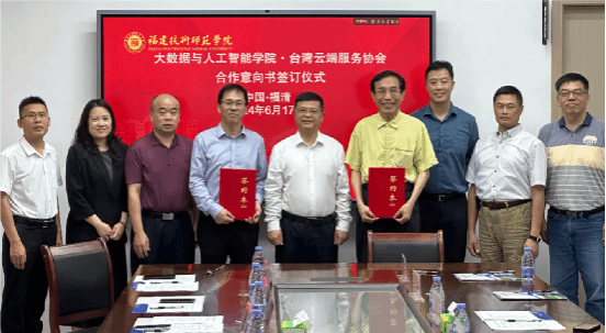 仪式上,双方代表正式签订《福建技术师范学院大数据与人工智能学院与台湾云端服务协会合作意向书》,将共同搭建一个产学研深度融合的桥梁,推动技术转移、孵化创新和研发合作的全面发展。