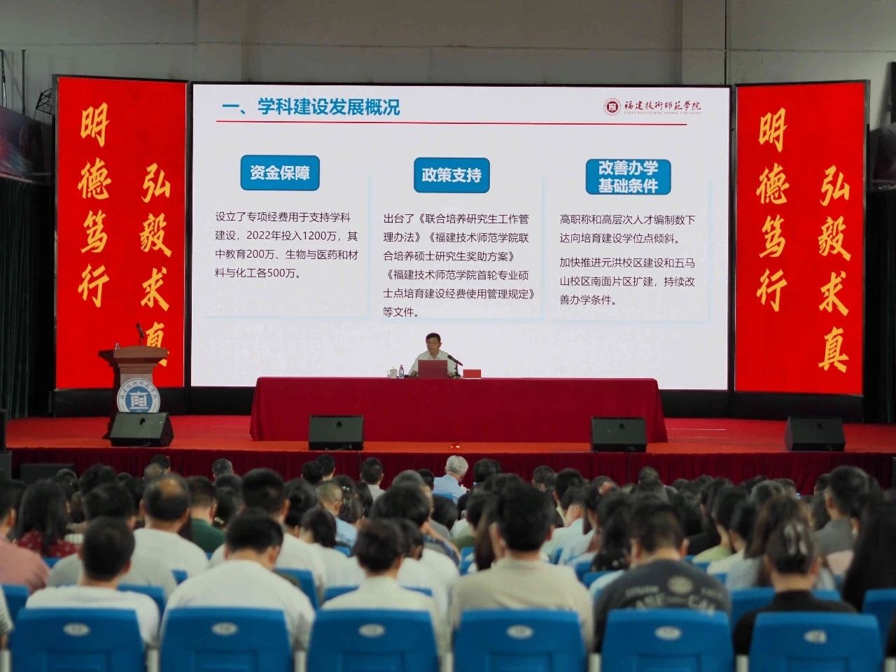 为深入贯彻落实国家、福建省对高等教育学科建设的战略部署和福建省经济社会发展对人才的需求,交流学科建设的新理念、新经验,探讨学科交叉融合的新路径、新方法,如期完成学校“十四五”教育事业发展专项规划提出的任务目标,推动学校学科建设的持续、健康、快速发展,6月26日下午,我校学科建设发展大会在石竹山校区学生活动中心召开。校党委书记赖海榕,校党委副书记、校长吴克寿,校党委副书记林海峰,校党委委员、纪委书记、监察专员张翼,校党委委员、副校长姜兴山出席会议。会议由林海峰副书记主持。