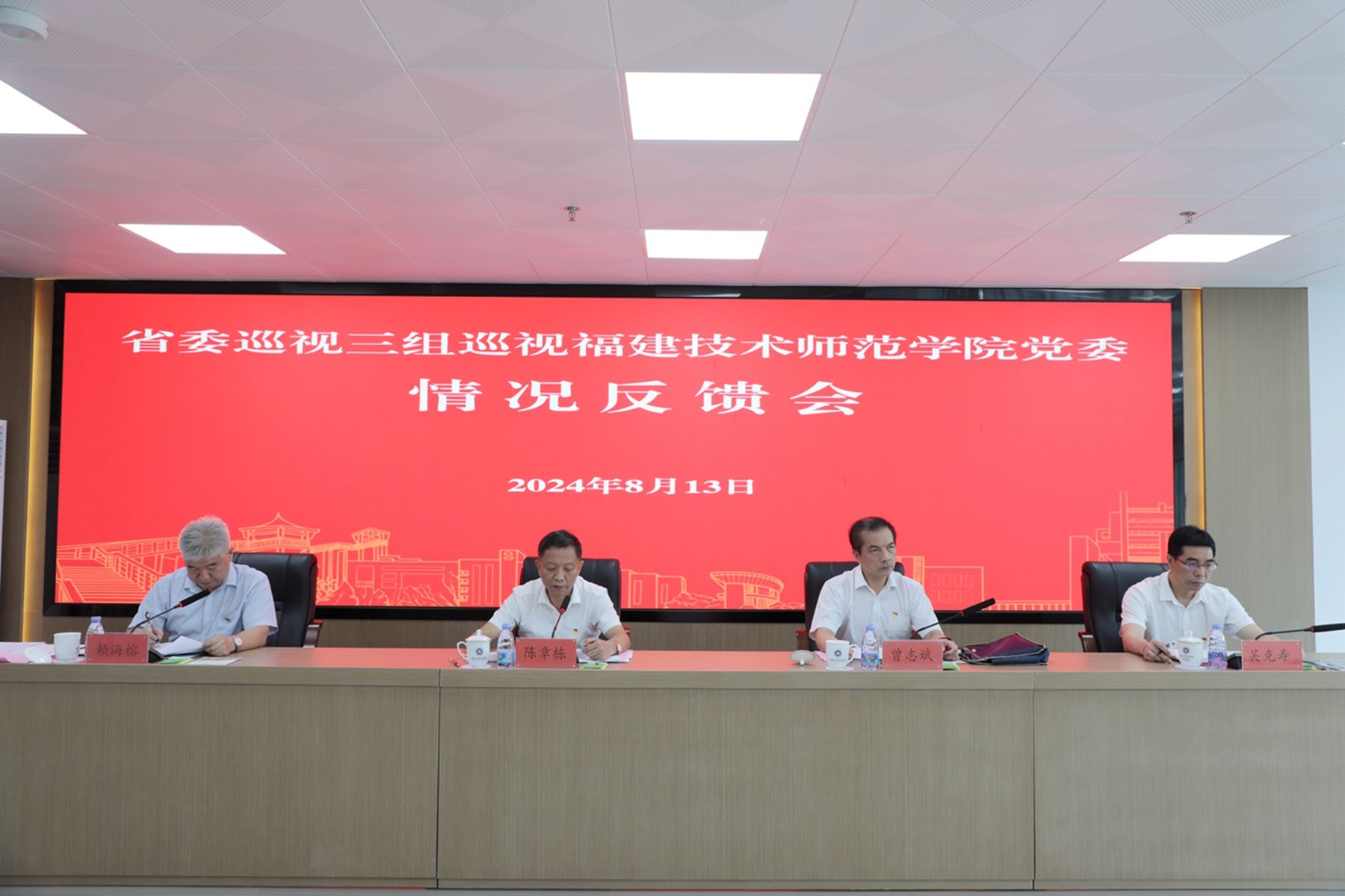 根据省委巡视工作统一部署,2024年3月26日至5月8日,省委巡视三组对福建技术师范学院党委开展了巡视。8月13日上午,省委巡视三组向福建技术师范学院党委反馈巡视情况。省委巡视三组,省纪委、监委第三纪检监察室,省委巡视办有关同志,校领导班子成员,纪检监察机构、组织人事部门负责人,内设机构主要负责人,部分担任过班子成员的退休老同志,干部、群众代表参加会议。
