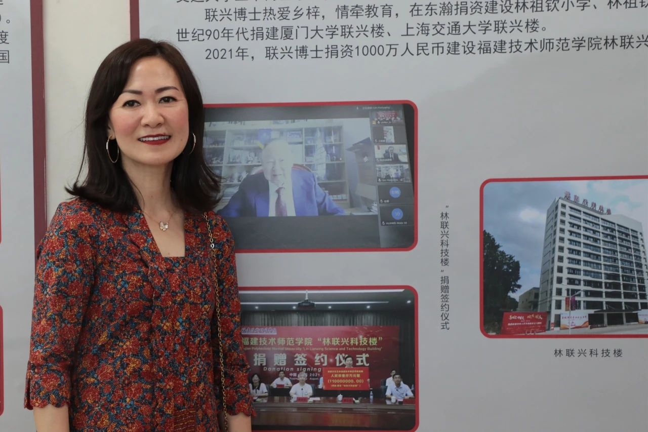 赖海榕书记陪同林慧云董事一行参观了林联兴科技楼一楼校史展厅,回顾学校办学历史。赖书记简要介绍了学校基本办学情况,重温了林联兴科技楼的捐建历程,展示了林蔡凤英图书馆的设计效果,并介绍了学校与祖钦中学对口帮扶的情况。赖书记特别提到,他在走访由林联兴博士捐资兴建的莲峰小学和祖钦中学的过程中,聆听了林联兴博士情系家乡、心系教育、乐善好施的感人事迹,真切感受到了林博士和家人的仁爱之心和高尚之举。赖海榕书记同时还介绍了学校五马山新校区建设情况和元洪校区建设进展,以及我校围绕中印尼“两国双园”项目与印尼各界开展的交流互动与合作情况。他希望林慧云董事和家人与学校赓续友谊,共襄学校发展大计。