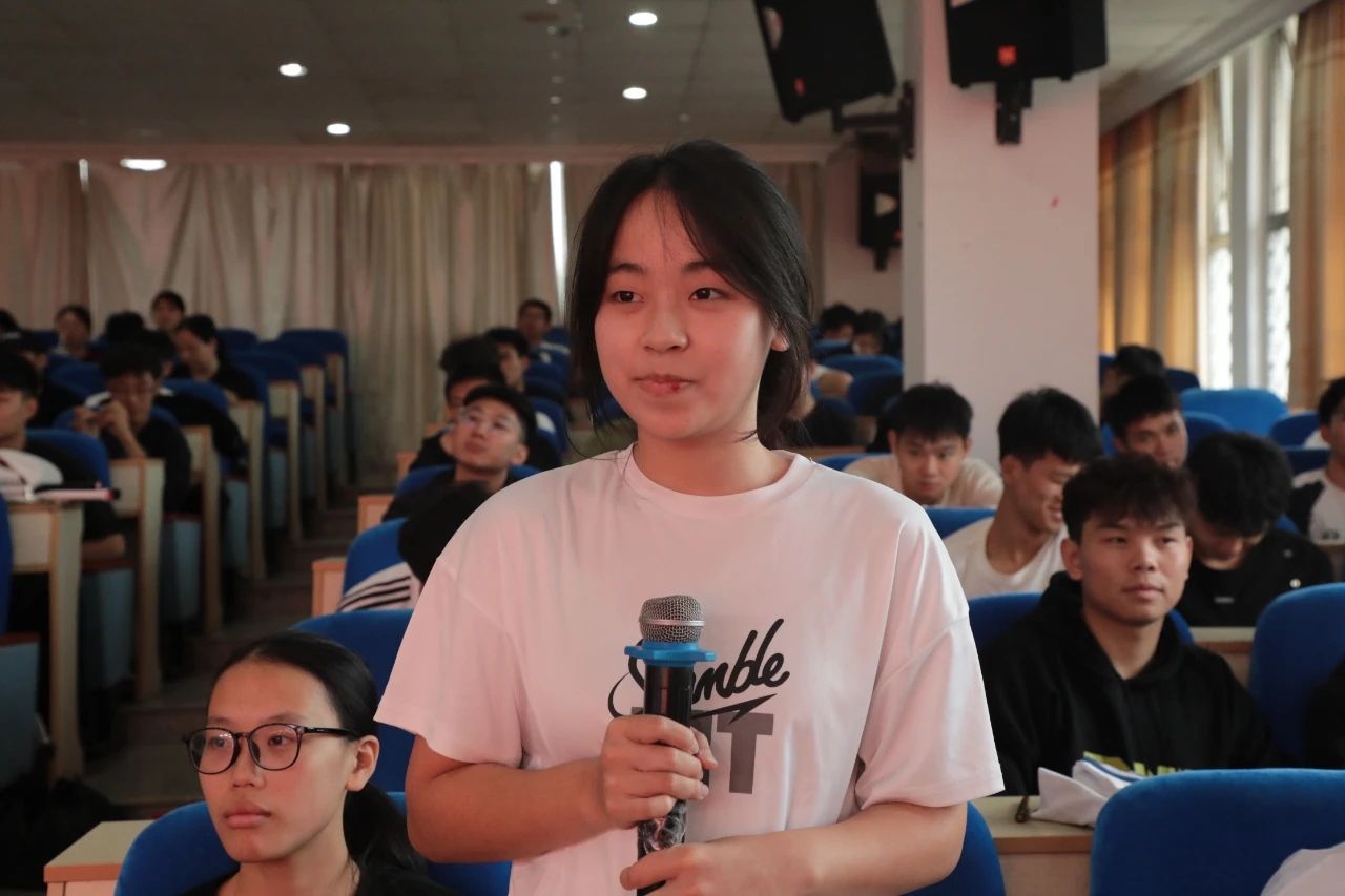 主题宣讲之后,徐云丽应邀作客学校文化品牌活动“她力量 正青春”女性成长教育专题活动,与同学们进行深入的互动交流。“选择从运动员转型为高校教师的心路历程是什么样的?”“如何应对和调节赛场压力?”“面对运动损伤,体育生该怎样走出困境?”“如何提升排球技能?”……同学们踊跃提问,现场气氛热烈。徐云丽在耐心回答同学们提问的同时,勉励同学们坚定理想信念,厚植家国情怀,相信自己、相信团队,不惧困难、不畏风雨,厚积薄发、坚持不懈,勇于突破、敢于胜利,为中国式现代化建设挺膺担当。