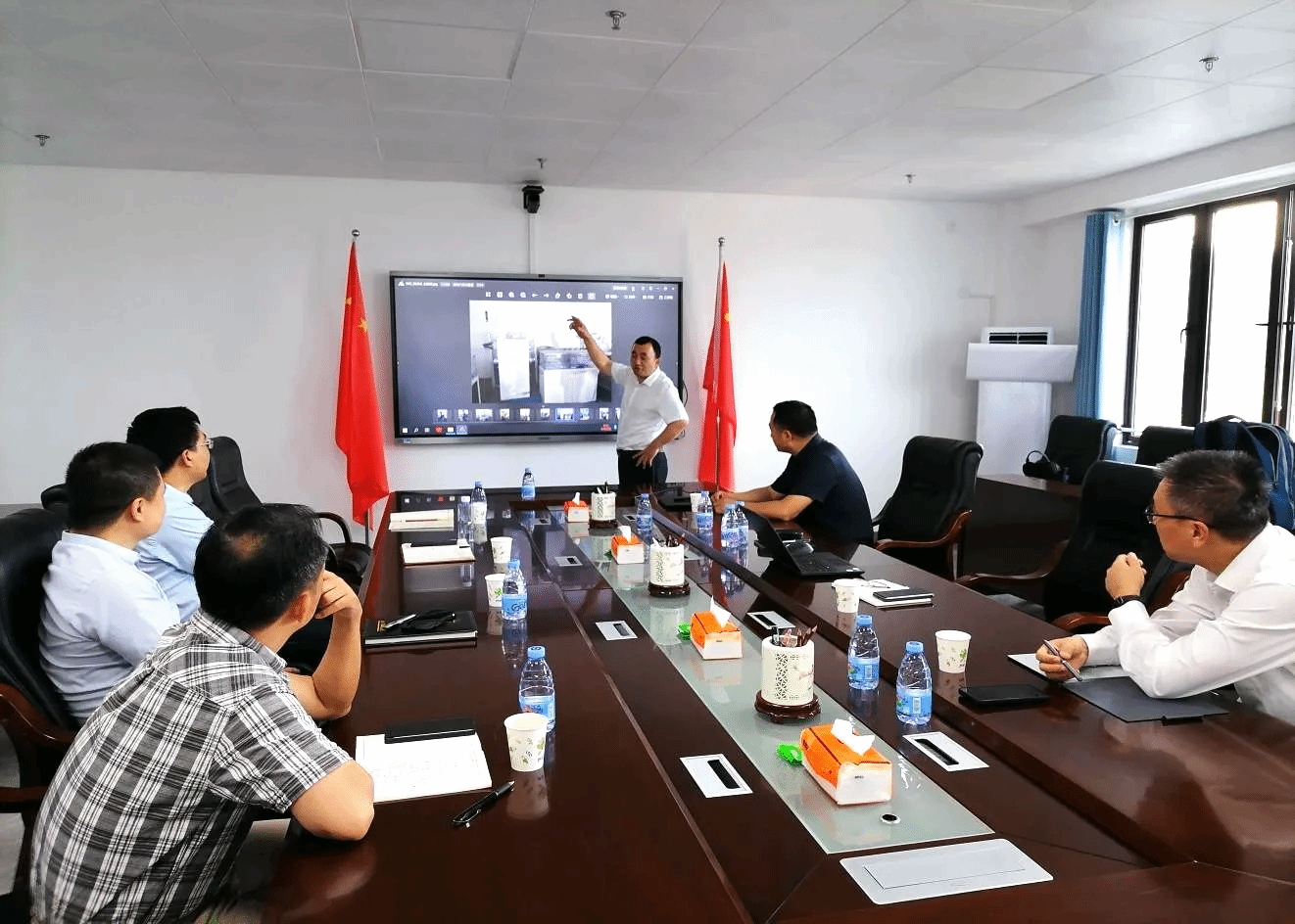 随后,校科研处、电子与机械工程学院相关负责人与王乾廷、王宝成一行举行专题座谈会,重点围绕工业互联网实验室共建事宜进行深入研讨。作为央企国机集团旗下子公司,国机智能在智能装备、工业互联网领域具备深厚技术积累,拟打造高水平科研实践平台,助力我校研究生联合培养、实践教学提升及机械电子等理工科专业。