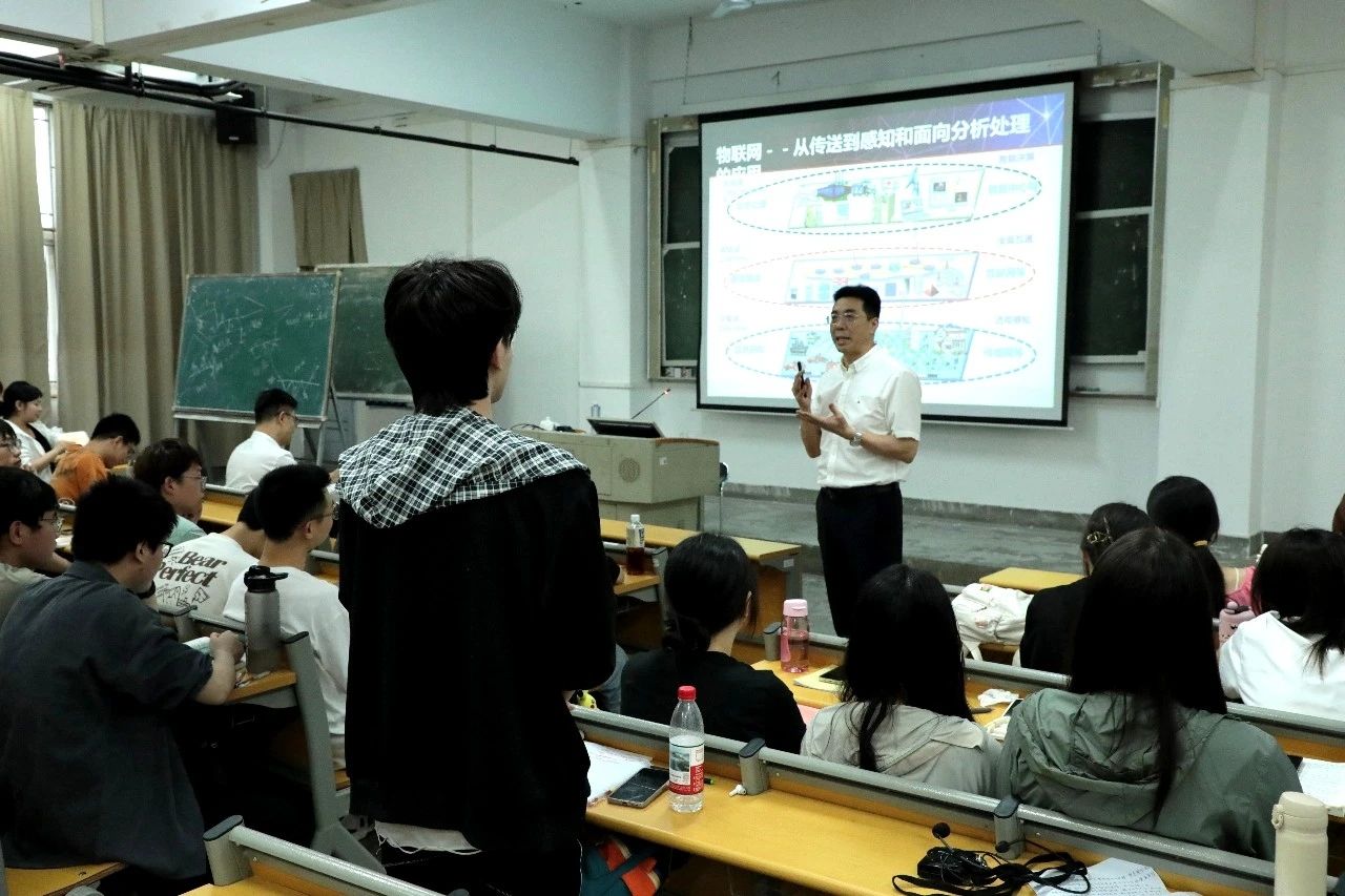 授课过程中,吴克寿将硬核科技史转化为生动育人资源,受到同学们的热烈欢迎。同学们表示,要珍惜韶华,勇立潮头,以实际行动践行“用世界语言传播中国创新,以市场力量驱动技术转化”的青春誓言。(马克思主义学院)