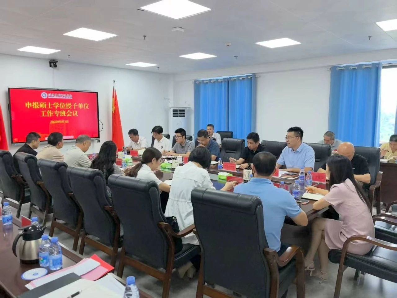 会上,科研处汇报了暑期以来申硕工作进展情况,教育、材料与化工、生物与医药等三个拟申报硕士专业学位点负责人分别就当前学位点建设情况、申报材料撰写进展及下一阶段工作计划作了详细汇报。与会人员围绕学科特色凝练、数据完善和材料规范性等方面展开研讨,并现场协调解决存在的问题。