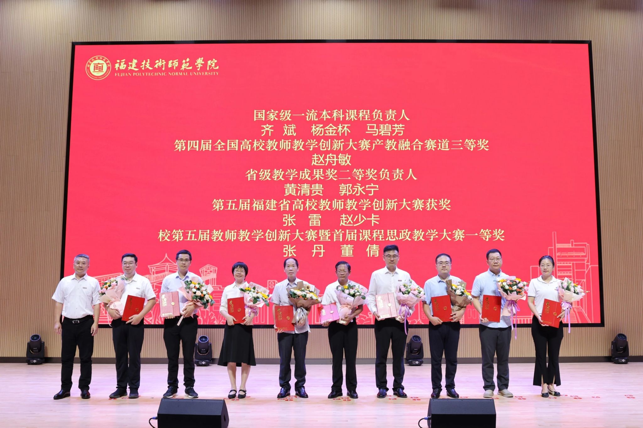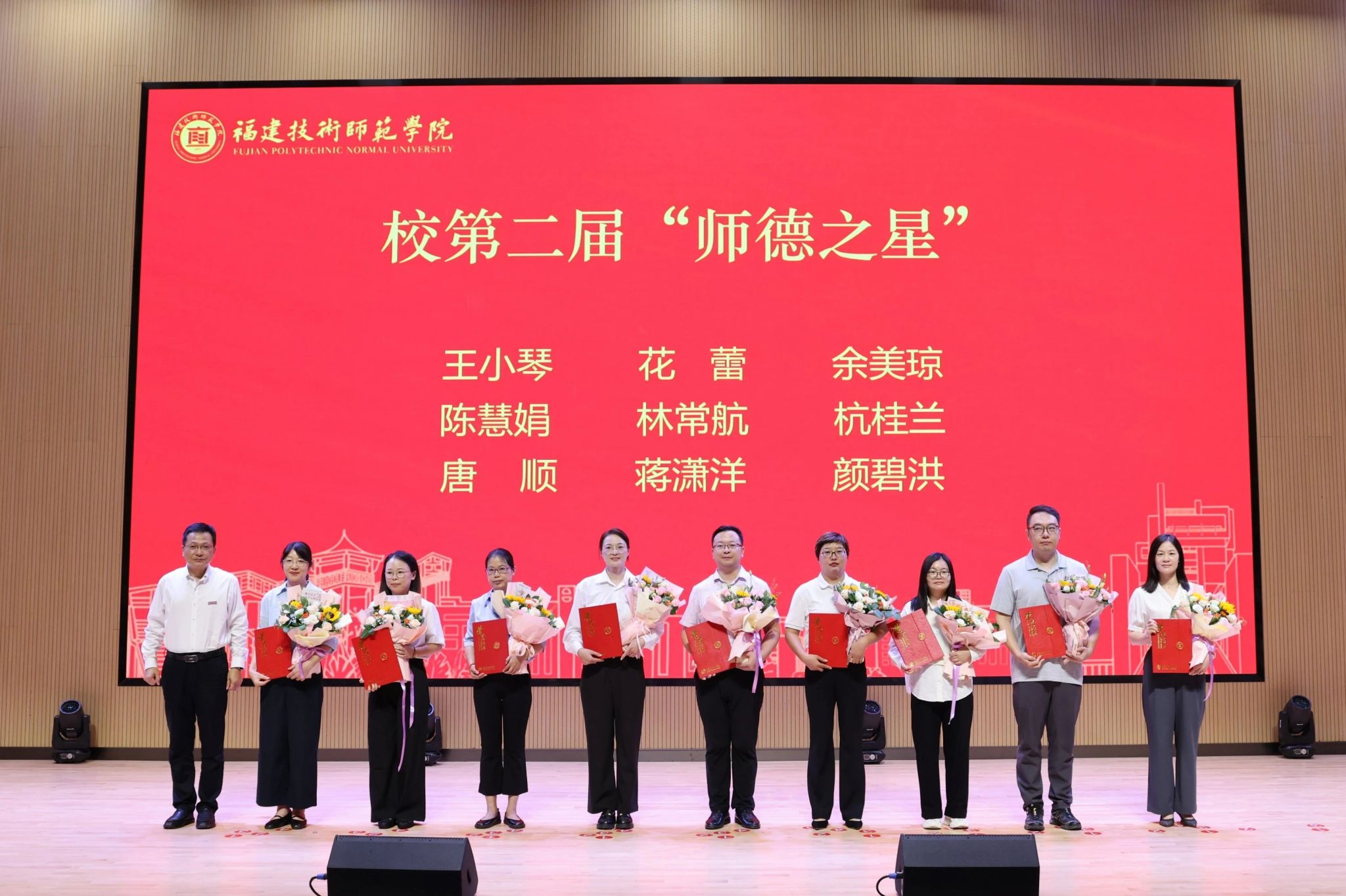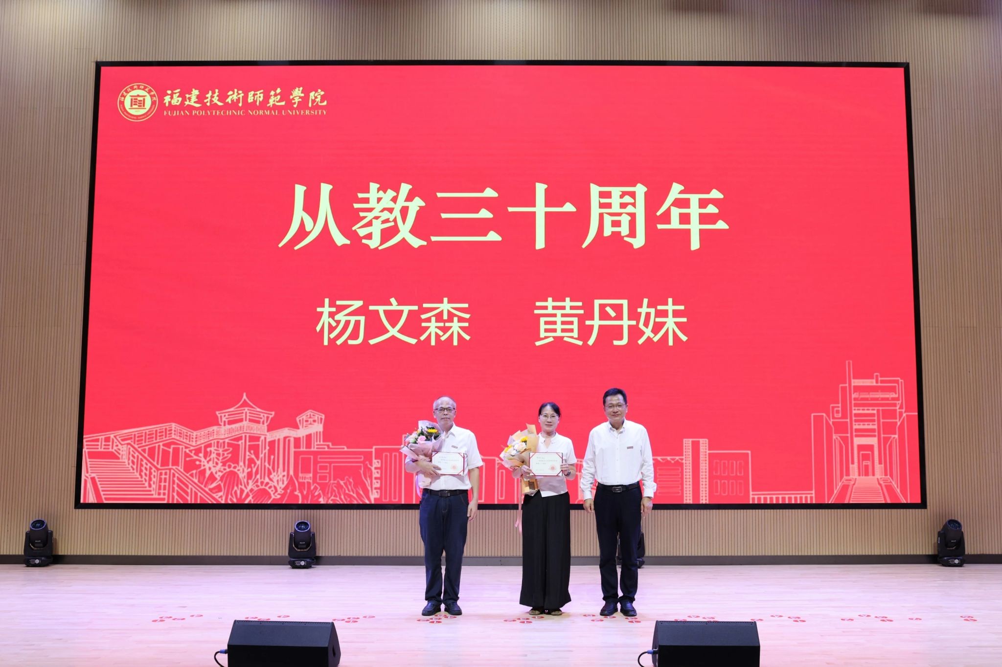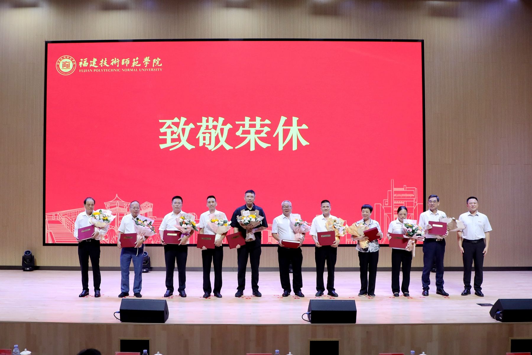 会上,学校为荣休教师代表颁发了荣休纪念品,为受表彰的教职工代表以及荣获“福建省人民政府从教荣誉”的教师颁发荣誉证书。新入职教职工在宋原教授的带领下庄严宣誓,表达投身教育事业的坚定决心。