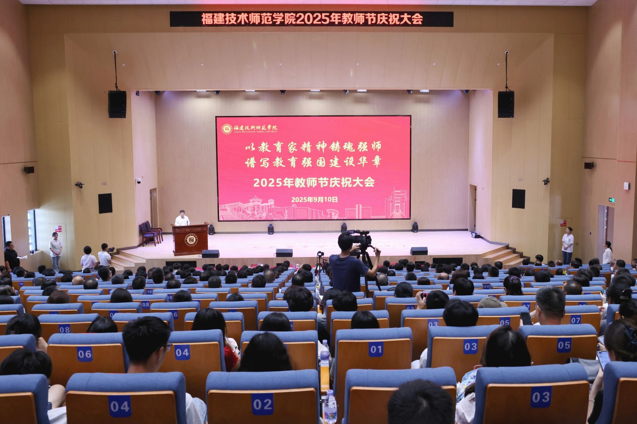 9月10日是我国第41个教师节。当天下午,我校在五马山校区宝琛图书馆报告厅隆重举行以“以教育家精神铸魂强师,谱写教育强国建设华章”为主题的2025年教师节庆祝大会。大会表彰了一年来在教学、科研、管理服务等工作中表现突出的教职工代表,并举行教职工荣休仪式和新教职工入职宣誓。校党委书记涂荣,校党委副书记林海峰,校纪委书记张翼,副校长姜兴山,原副校长商光美出席会议。受表彰先进个人代表、从教30周年教师代表、荣休教师代表、各单位党政负责人、新入职教师、师生代表等参加大会。大会由姜兴山主持。