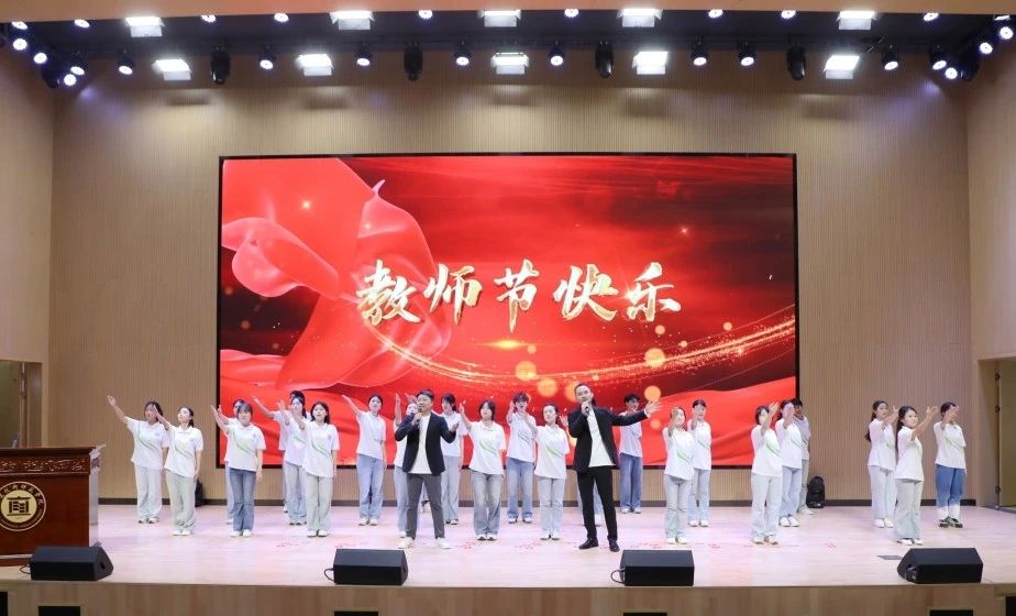 庆祝大会上,师生代表表演了朗诵《师者如光,薪火相传》、独唱《长大后,我就成了你》、师生合唱《追寻》等精彩节目,用真挚的表演表达对老师们的感谢与敬意。大会在激昂的校歌中圆满落幕。