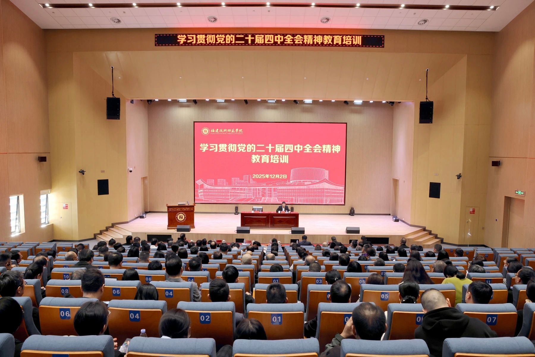 12月2日,校党委举行学习贯彻党的二十届四中全会精神教育培训。校党委书记涂荣作辅导报告。校党委副书记、校长吴克寿主持会议。校领导,全校处科级干部、跟岗教师参加学习。