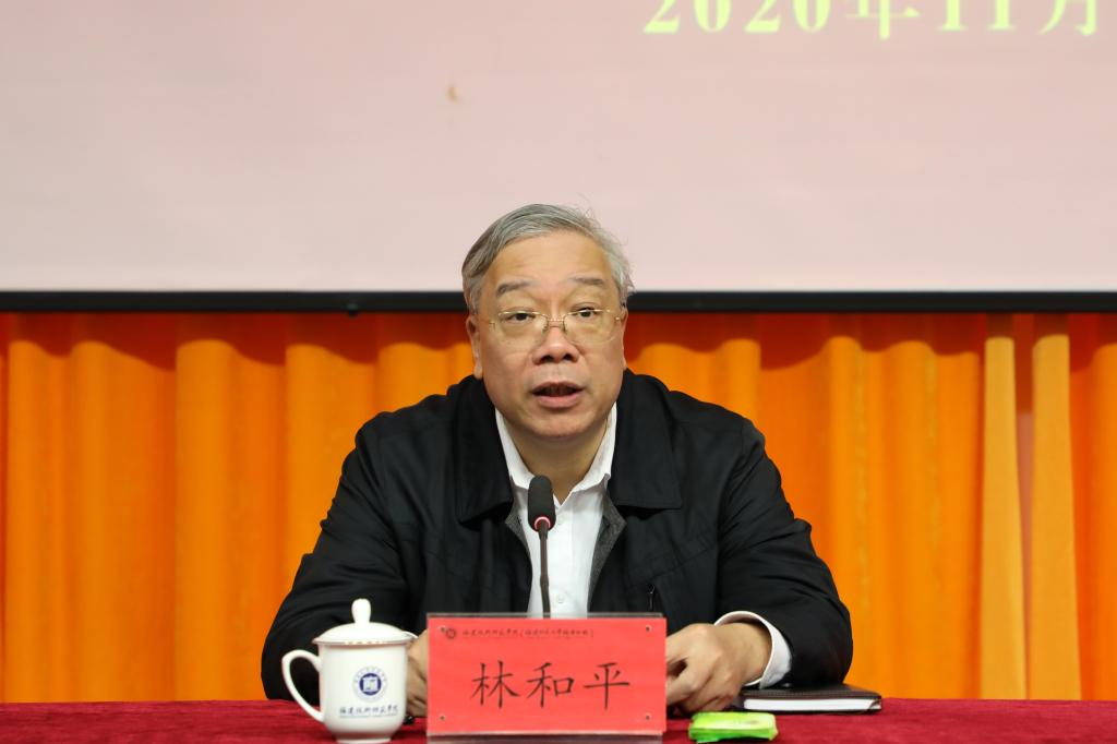 林和平同志作了讲话。他指出,学校领导班子的配备,充分体现了省委、省委组织部对学校的重视、关心和厚爱,体现了学校未来的使命和机遇,是学校发展和政治生活中的一件大事,标志着学校进入一个新的发展阶段。全校干部师生要以高度的政治责任感认真贯彻省委决定,以更加积极的态度和扎实的作风,全力支持新班子工作,齐心推进学校改革发展。他对我校班子建设和事业发展提出了三点意见。一要明确一个目标,努力开创学校事业发展新局面。要找准办学定位、科学谋划未来、凝聚师生共识,把学校建设成为特色鲜明的高水平技术师范院校。二要把好三个“势”,科学研判学校改革发展的机遇与挑战。要进一步解放思想,坚持实事求是,认清形势、发挥优势、克服劣势,集中力量实现重点突破,以高质量、深层次、引领性的改革发展,努力在服务全方位推动高质量发展超越中有新的更好作为。三要突出三个“度”,着力提升办学质量和水平。要从优化全省高等教育类型结构和推动社会经济发展的战略目标出发,明确办学定位发展思路,建立健全与本科相适应的管理体制和运行机制,提升高度、增加亮度、拓宽深度,为打造具有福建特色的现代职业教育体系作出自己的贡献。