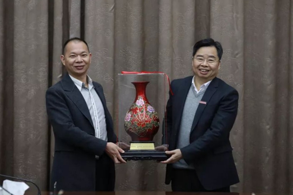 交流会上,校友们向学校赠送了印有“师传博技 范典知行 谨学严教 英才辈出”字样的漆线雕作品,表达对母校的眷念与祝福。