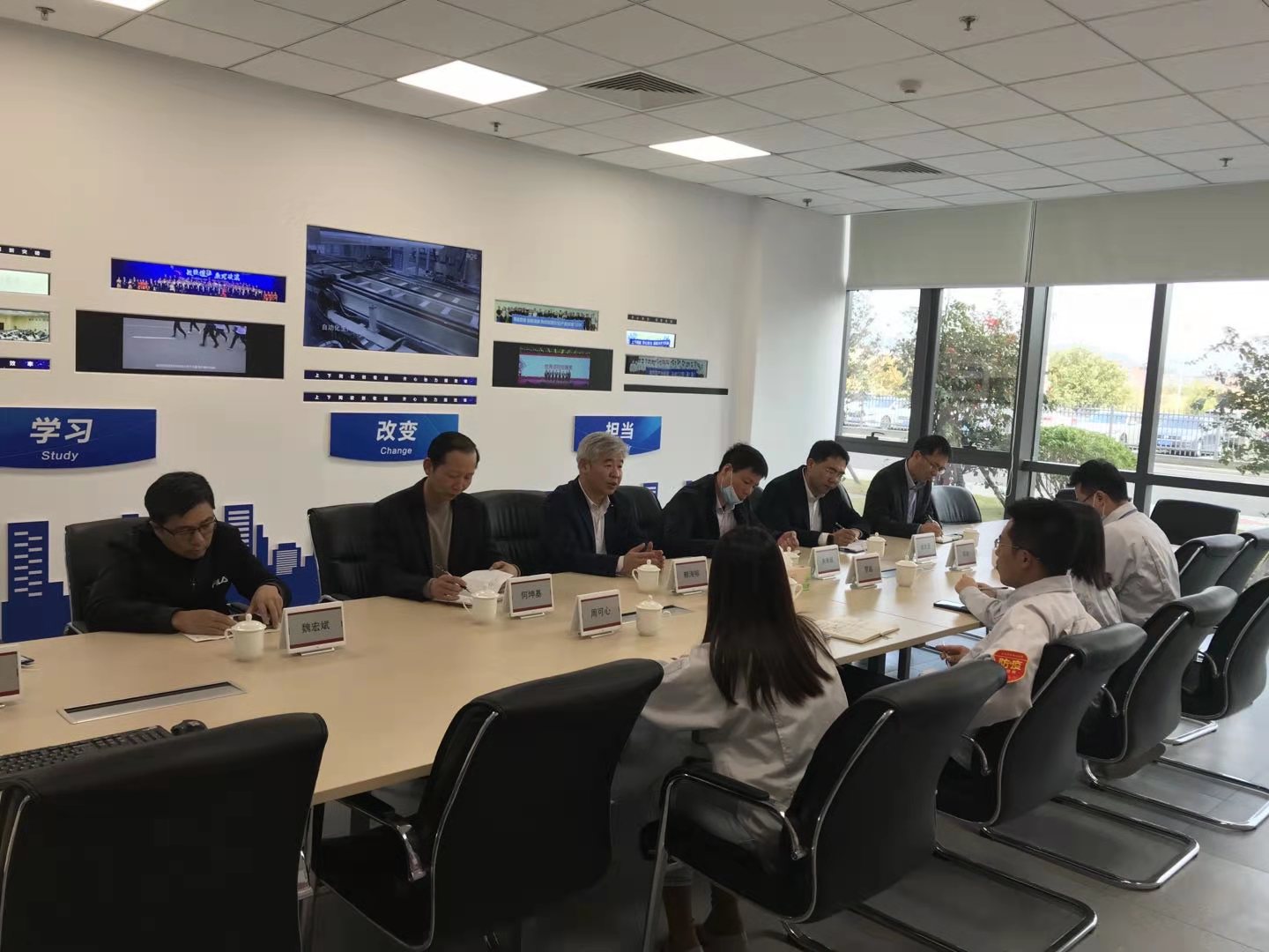 会后,张鹏总经理还陪同赖海榕书记参观了产品展厅。  (发展规划处)
