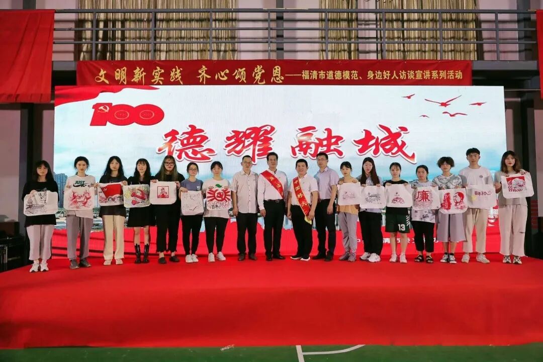 6月7日晚,由福清市新时代文明实践中心与我校团委联合主办的“文明新实践 齐心颂党恩”——福清市道德模范、身边好人访谈宣讲系列活动在我校球类馆举行,福清市委宣传部副部长、文明办主任郭芳辉,以及我校100多名师生代表到场参加,福清市民、我校师生、家长等近万人次通过网络直播方式收看。