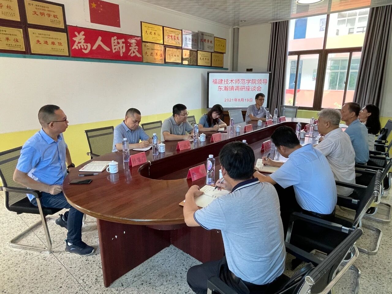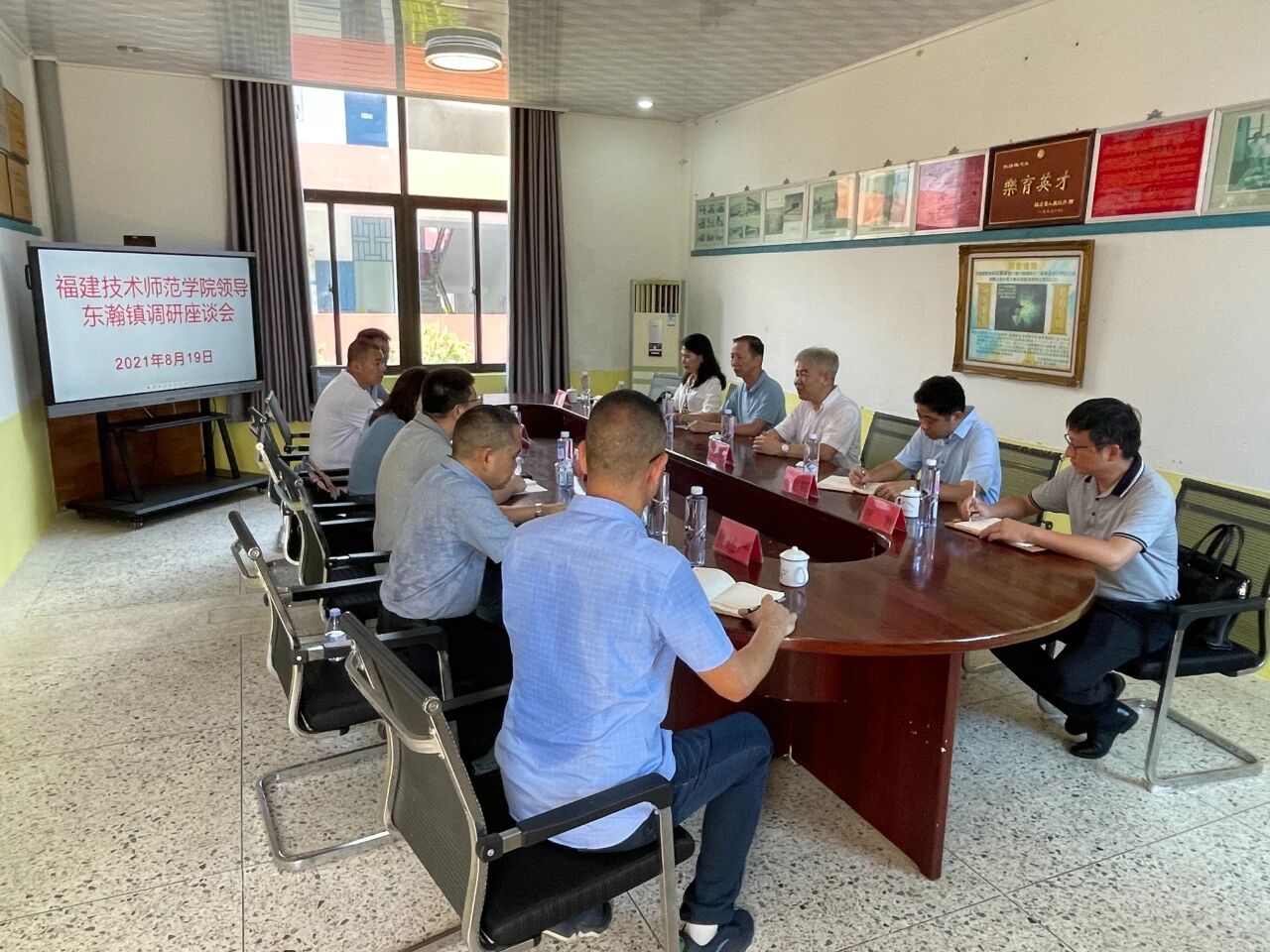 在调研座谈会上,张玲玲副局长代表福清市教育局向赖书记一行的到来和关心表示热烈欢迎和衷心感谢。她指出,在林联兴博士的关心支持和慷慨帮助下,莲峰小学和祖钦中学在人才培养、文化传承等各方面取得了明显的办学成效,学校的办学态势持续向好,但也存在着部分学科师资不足等问题。她希望我校充分发挥艺术、体育、汉语言文学、英语等学科专业优势,帮助莲峰小学、祖钦中学补短板、促发展。东瀚镇镇长何俨表示,莲峰小学和祖钦中学作为侨捐学校,承载着侨领侨胞的深沉之爱和殷切期望,东瀚镇政府将会全力支持,为我校帮助两所学校提升发展提供全方位保障。刘百云、林述严校长分别介绍了两所学校的校史校情、办学特色以及存在的具体困难。