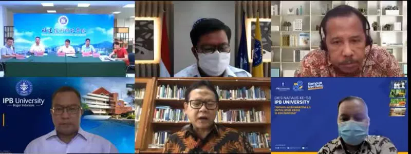 印尼前海洋渔业部部长、民主斗争党海洋渔业委员会主席、茂物农业大学渔业和海洋科学学院教授洛克明(Rokhmin Dahuri),茂物农业大学校长阿里夫•萨崔尔(Arif Satria)、副校长多迪克·里乔(Dodik Ridho)、国际项目负责人伊斯甘达·斯瑞格(Iskandar Siregar)等在线参会。我校副校长陈志勇,国际合作与交流处、科研处、中印尼联合共建海洋食品研发中心等相关单位负责人参加会议。
