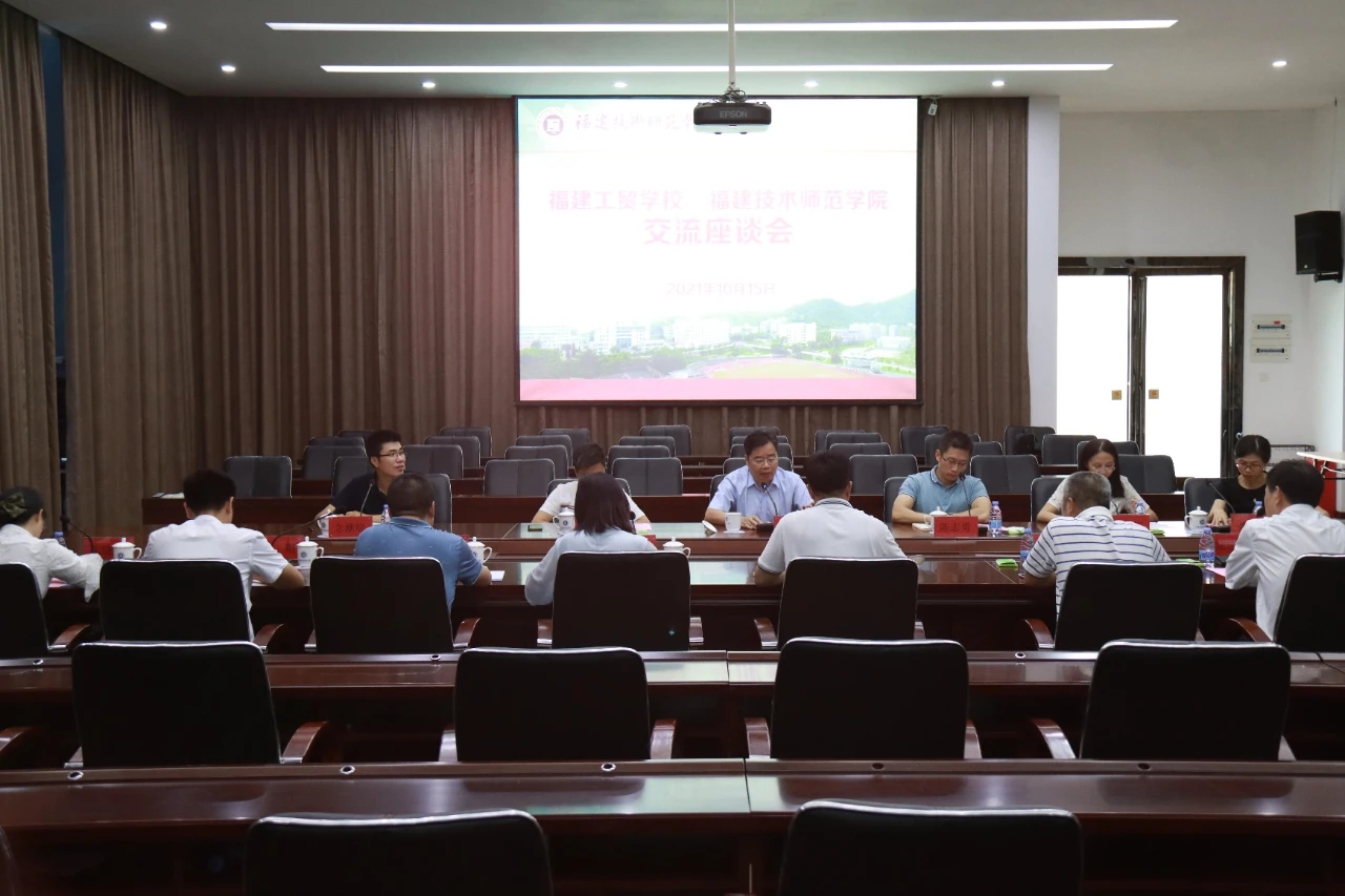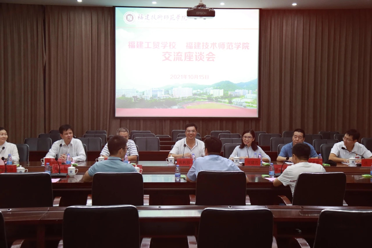 双方举行了座谈会。廖深基校长简要介绍了学校基本情况以及办学特色、发展规划。廖校长指出,福建工贸学校作为国家级重点职业院校,办学特色鲜明,办学成效显著,为社会输送了一大批优秀人才。我校愿意与福建工贸学校推动校际合作,希望福建工贸学校发挥行业办学的独特优势,积极争取政策支持,在招生改革上先行先试,共同推动福建职业教育改革发展。