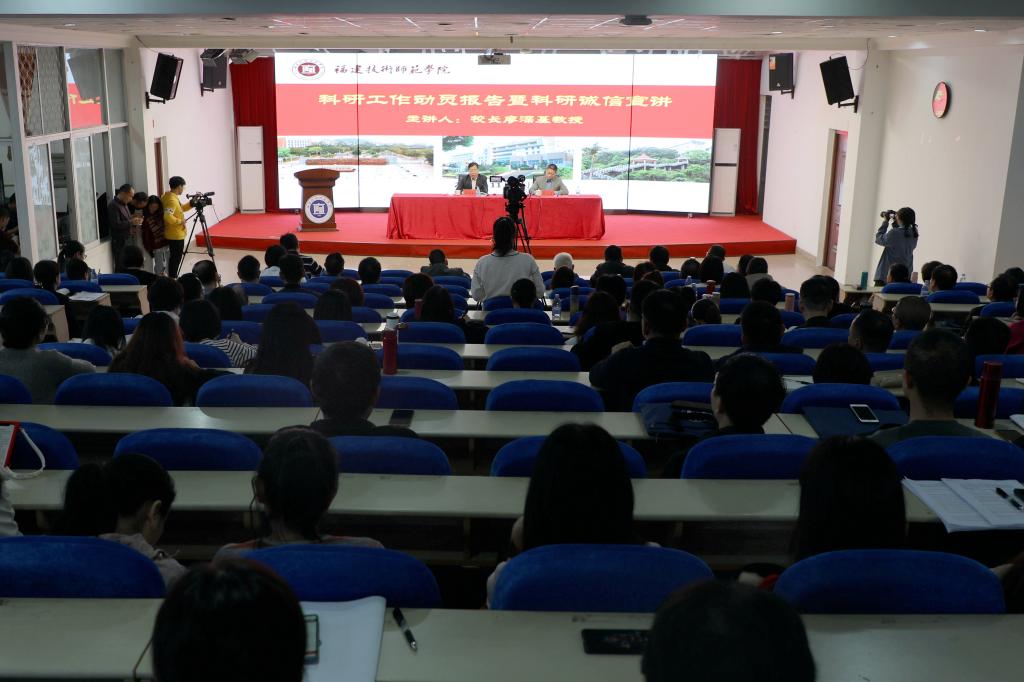 廖深基校长作科研工作动员报告。他结合学校科研工作实际,着眼学校未来发展方向,对做好学校科研工作提出三点要求。一要强化科研意识,清醒认识科研工作重要性。二要认清科研工作新形势,拓展科研发展新领域。三要注重顶层设计,加强科研工作组织领导。他强调,科研工作是衡量高校办学质量的重要支撑,也是带动其他办学要素联动发展的核心环节。要充分认识到当前学校科研工作中的短板,结合我校办学特色和办学优势,开创科研新局面。要提早谋划,广泛动员,精心组织,强化管理,汇聚力量推动科研工作再上新台阶。