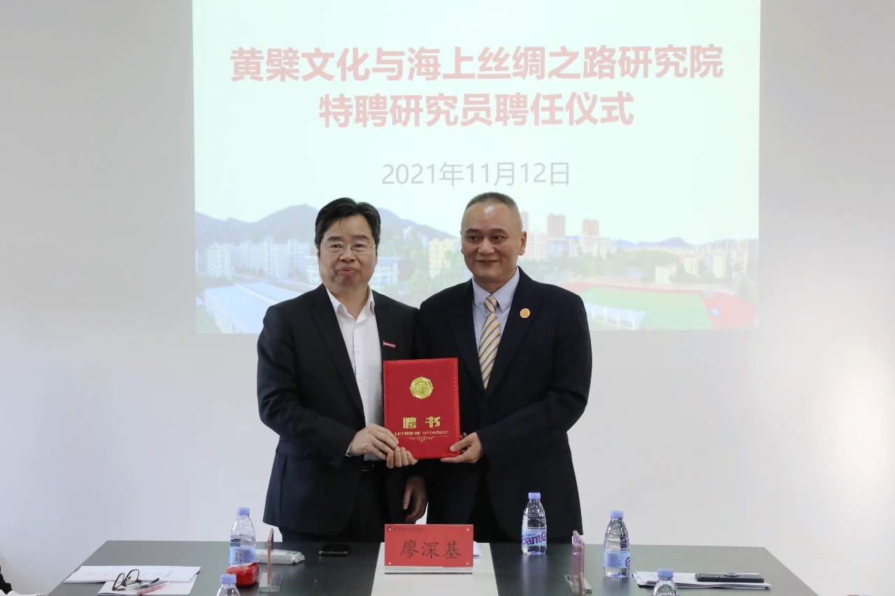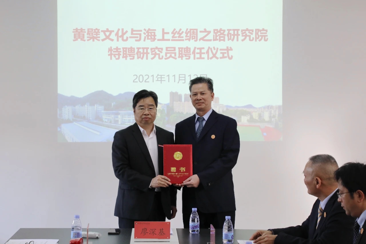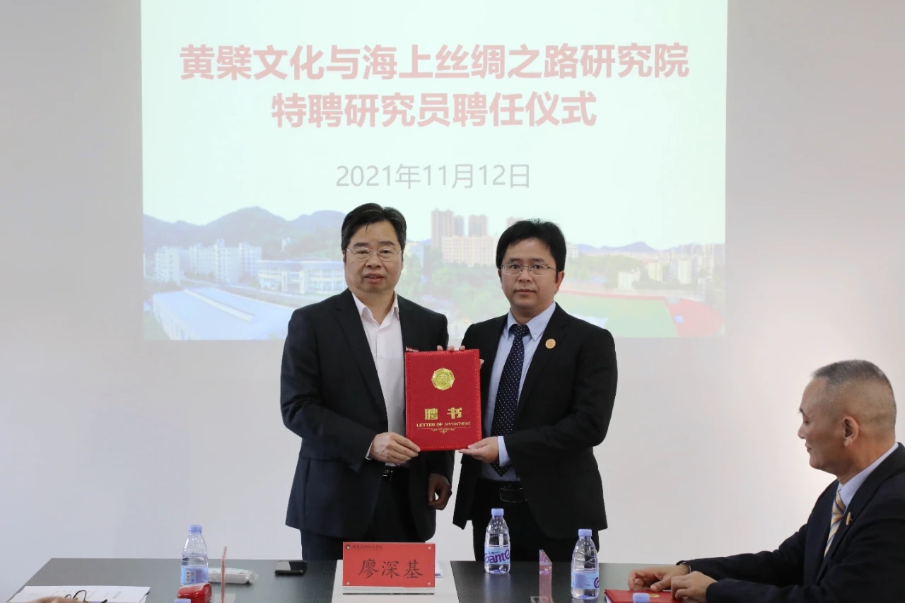 11月12日下午,我校在百德书院三楼会议室举行黄檗文化与海上丝绸之路研究院特聘研究员聘任仪式,聘请福清黄檗文化促进会会长林文清、副会长郑松波、秘书长念家圣为特聘研究员。我校校长、黄檗文化与海上丝绸之路研究院院长廖深基为3位特聘研究员颁发聘书,科研处、黄檗文化与海上丝绸之路研究院、文化传媒与法律学院、外国语学院和马克思主义学院相关师生代表参加了活动。