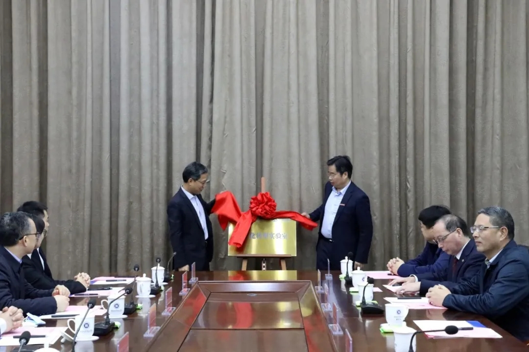 签约仪式上,黄德良总裁与廖深基校长共同为双方共建的“数字化转型实验室”进行了揭牌。