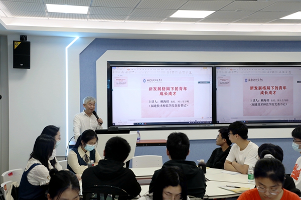 围绕“新发展格局下的青年成长之路”的授课主题,赖书记从把握新发展阶段、贯彻新发展理念、构建新发展格局的重大意义、丰富内涵和实践要求等方面进行了深入而生动的解读,并结合学校发展实际和自身成长经历,立足青年学生思想、学习和生活实际,引导青年学生深入思考如何在新发展格局下长真知、成英才,为同学们作了针对性的指导。