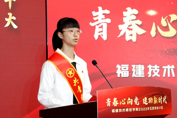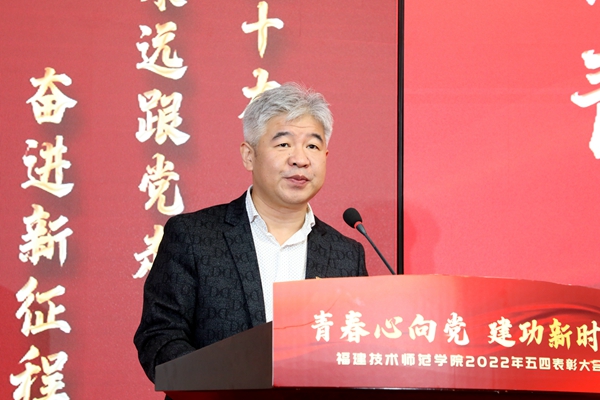 5月12日上午,我校在五马山校区科学楼学术报告厅举行“青春心向党 建功新时代”2022年五四表彰大会。校领导赖海榕、廖深基、张翼、陈志勇、商光美出席大会,大会由校党委副书记林海峰主持。党政办公室、组织部、宣传部、统战部、学生工作部、安全保卫处(武装部)主要负责人,各学院党委主要负责人、团委负责人、辅导员及受表彰学生代表在主会场参加,各学院设分会场,福建技术师范学院团委微信视频号全程网络直播。