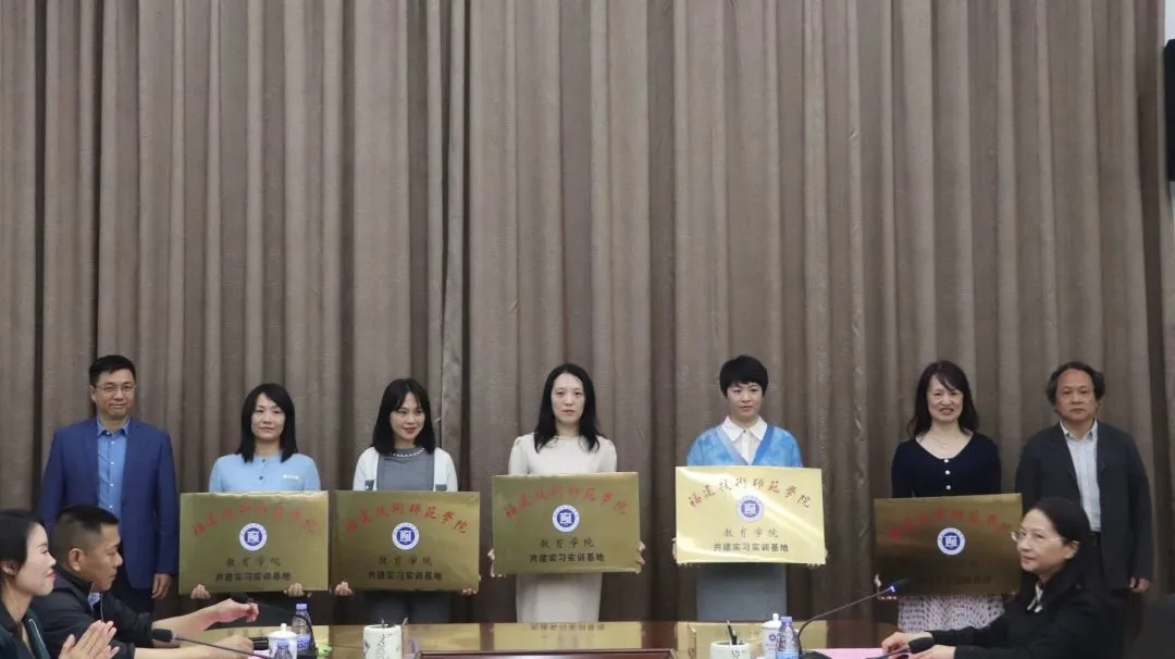 会上,陈志勇副校长为学前教育专业首批8位校外导师颁发了聘书。教务处、教育学院负责人为学前教育专业首批共建实习实训基地——5所优质省、市示范幼儿园授牌。