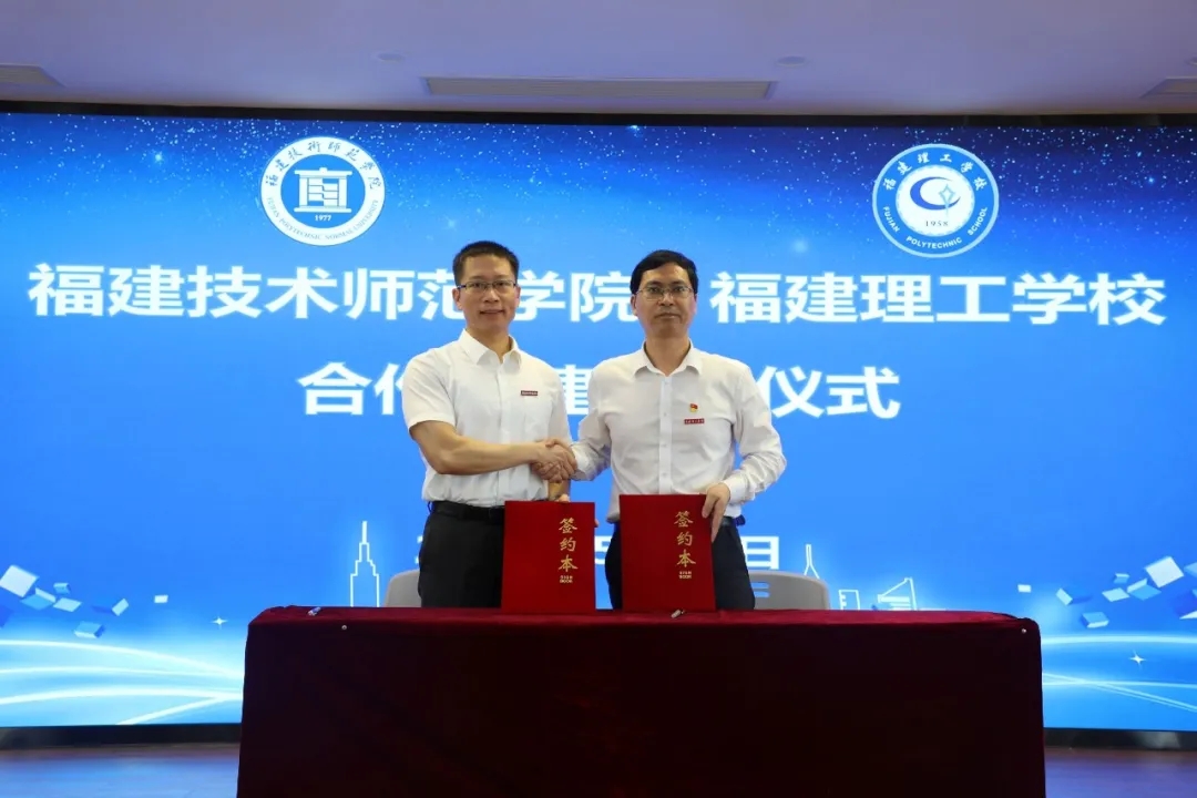 福建技术师范学院副校长陈志勇与福建理工学校校长江国奋分别代表双方,签署了基地校协议。