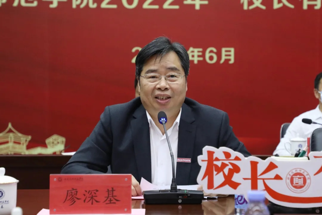 廖深基校长首先向同学们通报了学校近期发展情况,分析了学校当前发展面临的新形势、存在的主要问题,和今后的主要发展思路。他表示,学校自独立设置以来发展形势喜人、态势良好,综合实力快速提升,但仍然存在着“成长的烦恼”,与同学们对学校的期待还有一定差距。他表示,师生所望就是学校工作所向。学校将坚持“以生为本、质量为要、学做合一、全面发展”的办学理念,认真倾听、切实解决同学们反映的困难问题,并以不断发展的实际成效回应、回报同学们对学校的信任和支持,为同学们健康成长创造更好的条件。他鼓励同学们畅所欲言,充分表达想法,锻炼自我素质,助力学校发展。