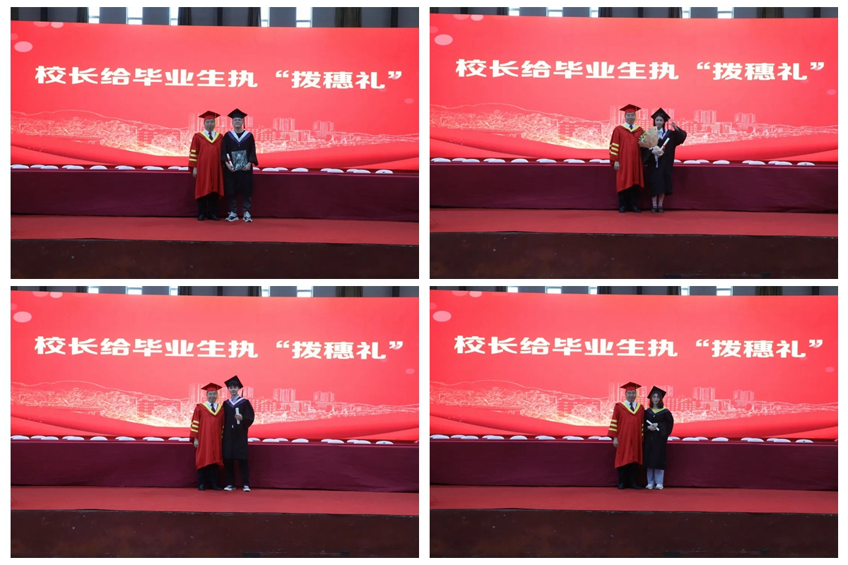 在长达4个小时的学位授予仪式上,廖深基校长为如期取得学位的1600多名毕业生逐一行“拨穗礼”,并合影留念。(校党委宣传部)