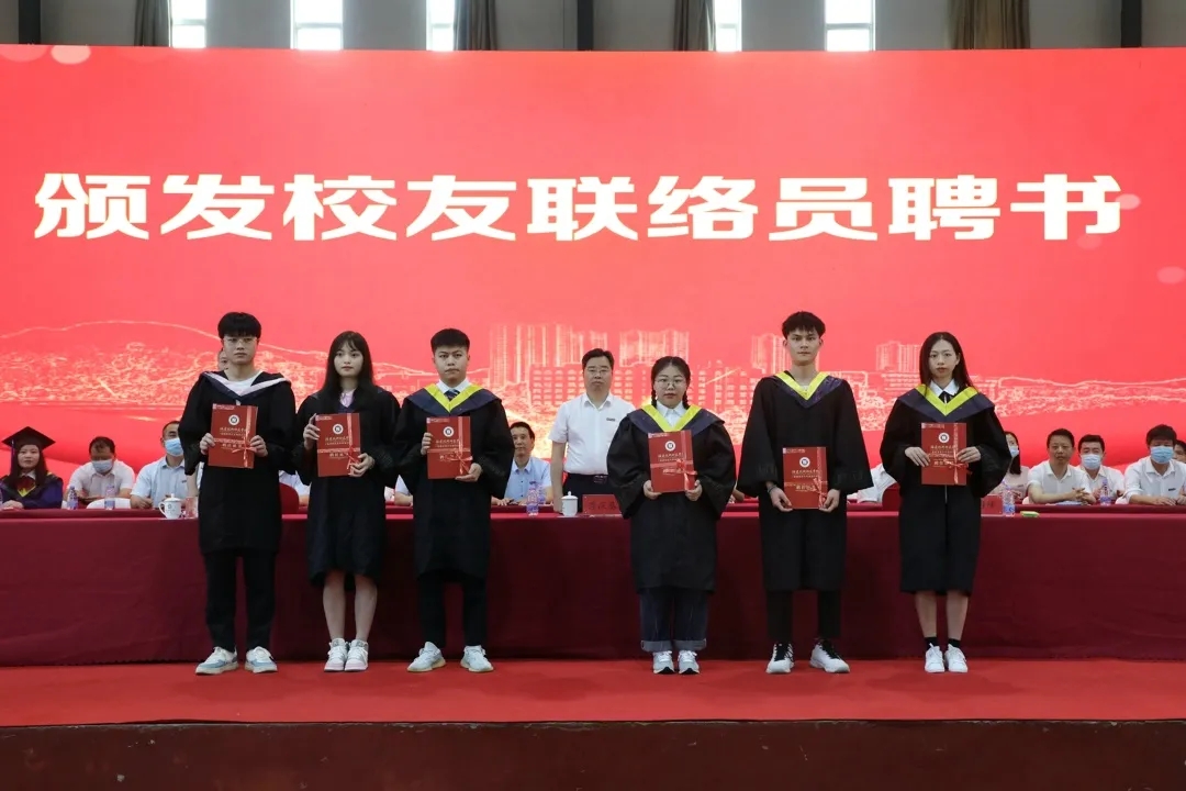 校领导为新聘校友联络员代表颁发校友联络员聘书。