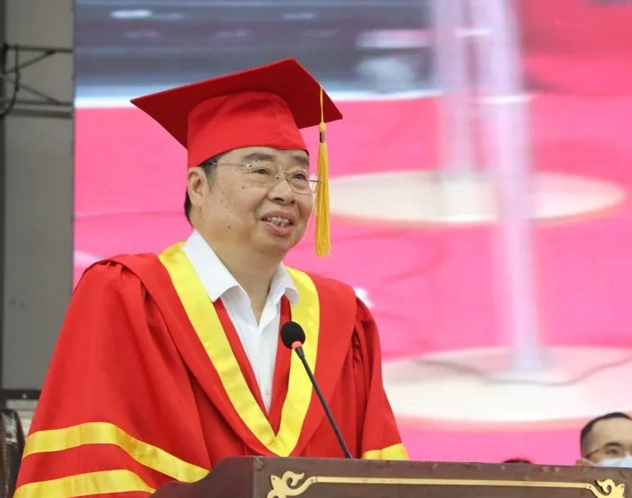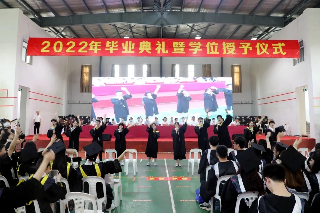 廖深基校长代表学校致辞,向全体毕业生表示热烈的祝贺,向老师和家长表示衷心的感谢,并与同学们回望大学时光、展望美好未来。他指出,青春因勇气和担当而闪光,人生因奋斗和拼搏而出彩。世纪疫情让我们的学习和生活变得不同寻常,也让我们感受到了祖国的伟大和强大。回望2022届毕业生共同走过的大学时光,它既是青春纪念册里璀璨耀眼的追梦年华,亦是大家克服疫情、完成学业、开启新篇的别样经历。廖校长向同学们提出了终身学习、不懈奋斗、光耀中华等三点希望。一要有终身学习的状态。梦想从学习开始,事业靠本领成就。要始终保持永不止步、孜孜不倦的学习状态,既要学有字之书、也要学无字之书,既要学通专业、学精业务,也要做到“学做合一”,持续充实自我、升华自己,以学习鼓起远航的帆,以知识铺就远行的路,驶向梦想的彼岸,用终身学习成就终身。二要有不懈奋斗的定力。人生只有拼出来的美丽,没有等出来的辉煌。躺平不可取,躺赢不可能。要正确对待一时的成败得失,受挫而不气馁,既会乘风而行,更能逆水行舟,使顺境逆境都成为人生财富而不是人生的包袱。要立志高远、立志躬行,扎扎实实干,点点滴滴做,勤勤恳恳为,脚踏实地“积跬步”,逐梦前行“至千里”,在火热和拼搏的青春中成就事业华章,开辟出一片属于自己的广阔天地,成就人生“C位”,做“最靓的仔”。三要有光耀中华的自觉。一个国家的进步,镌刻着青年的足迹;一个民族的未来,寄望于青春的力量。要把学习奋斗的具体目标同民族复兴的伟大目标结合起来,增强光耀中华的自觉,坚定“青春向党、不负人民”的信念,践行“复兴栋梁、强国先锋”的使命,始终把爱国情、强国志、报国行体现在扎根人民、爱岗敬业、干好本职、奉献社会上,主动将小我融入大我,把小事当作大事干,在平凡的岗位上干出不平凡的业绩,不负韶华、不负时代,用实际行动诠释“清澈的爱,只为中国”。