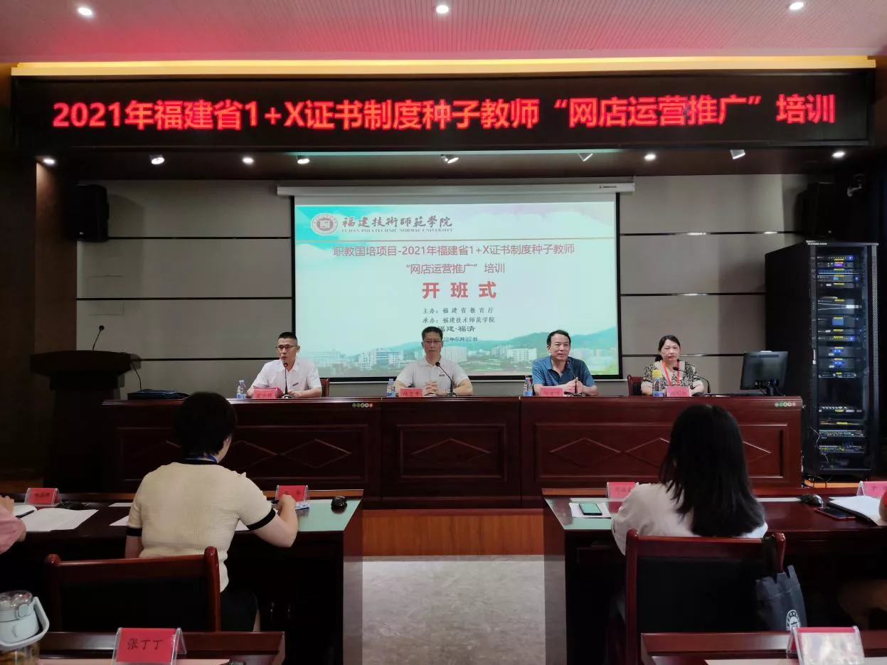 6月27日上午,由省教育厅主办、我校承办的国家级职教师资培训项目——2021年福建省1+X证书制度种子教师“网店运营推广”培训正式开班。福建省职教师资培训中心主任、我校副校长陈志勇教授出席开班式并致辞。来自全省30所中高职院校的教师代表,以及我校继续教育学院、经济与管理学院负责人等参加了开班仪式。