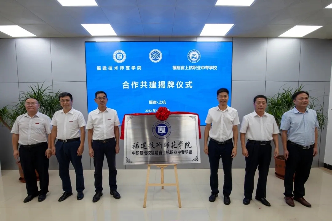 当天下午,福建技术师范学院中职基地校福建省上杭职业中专学校揭牌仪式在福建省上杭职业中专学校成功举行。副校长商光美,龙岩市教育局党组成员、副局长温寿春,上杭县县委常委、政法委书记邱禄炎,上杭县教育局党组书记、局长袁晓芳,上杭职业中专学校党总支书记、校长张先琳等出席签约仪式。