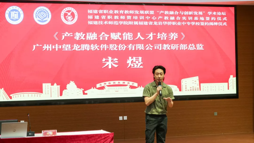 签约揭牌仪式后,福建省职业教育教师发展联盟“产教融合与创新发展”学术论坛开讲。广东省机械技师学院党委书记、二级教授冯为远,闽西职业技术学院教授、教务处长张源峰,广州中望龙腾软件股份有限公司教研部总监、校企合作领域资深专家宋煜等专家学者,分别作了《世界技能大赛冠军是如何炼成的》《双高校建设背景下产教融合实施路径的思考》《产教融合赋能人才培养》等专题报告。