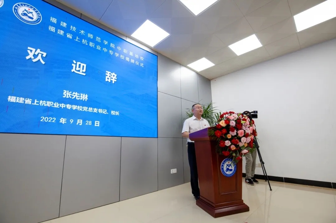 在签约揭牌仪式上,张先琳校长致欢迎辞。他向来宾介绍学校的办学特色及取得的成绩。他表示,学校将珍惜机会,高度重视,加强与福建技术师范学院联系沟通,寻找合作项目,创新合作方式,形成合作机制,使双方合作尽快落实到实处,不断推进两校合作蓬勃发展,累结硕果。