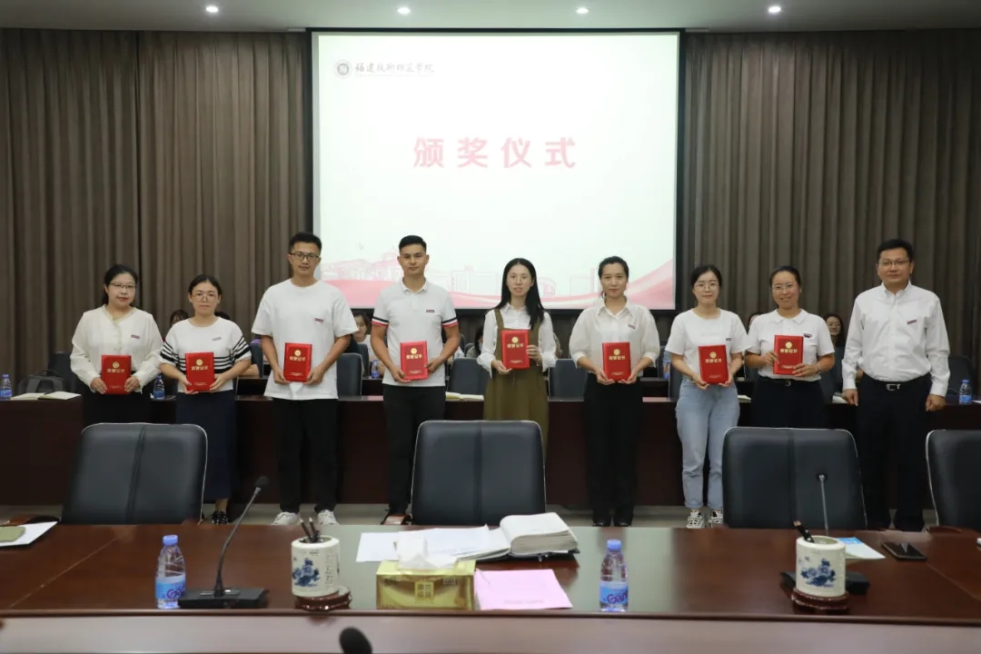 入职仪式上,林海峰副书记为2021年度全国高校思想政治工作优秀案例、福建省高等学校思想政治教育研究会2021年优秀工作案例以及学校思想政治研究会2021年优秀论文和工作案例等项目的获奖代表颁奖。