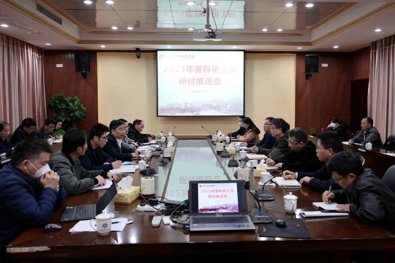 会上,各学院负责人分别汇报了2022年科研工作总结及2023年科研工作目标和具体举措。科研处负责人通报了2023年学校科研工作重点。