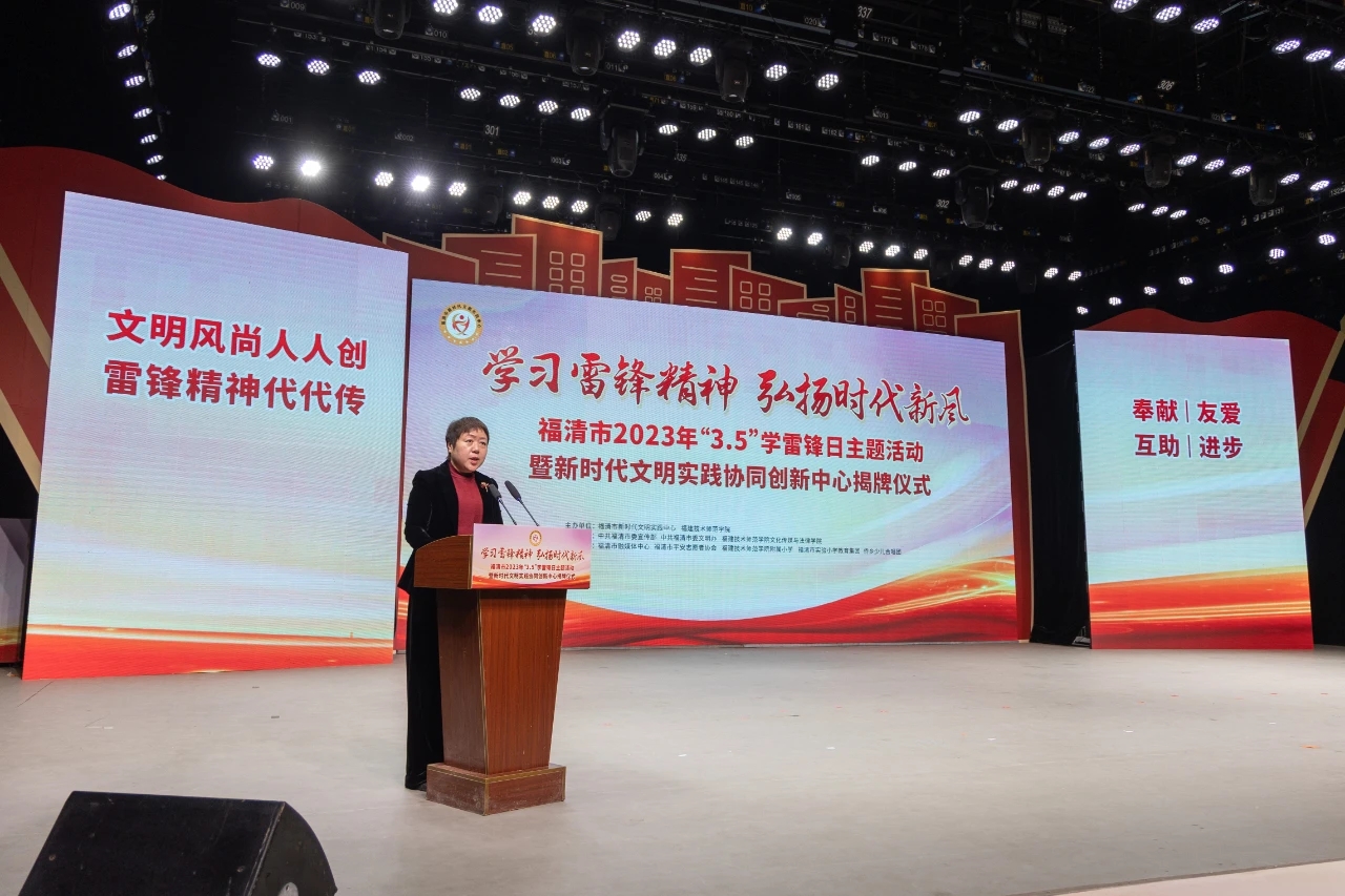 林彤部长在致辞中表示,新时代文明实践协同创新中心的揭牌成立,是福清市深化拓展新时代文明实践中心建设的有益探索,也是推进全市精神文明创建的大胆创新。她希望以协同创新中心成立为契机,校地携手进一步深入开展新思想、家风家训、移风易俗等多层面实践研究,努力产出一批协同创新成果,进一步培育时代新风新貌,以实际行动书写新时代的雷锋故事,让雷锋精神在创建全国文明城市的新征程中焕发新的光彩。