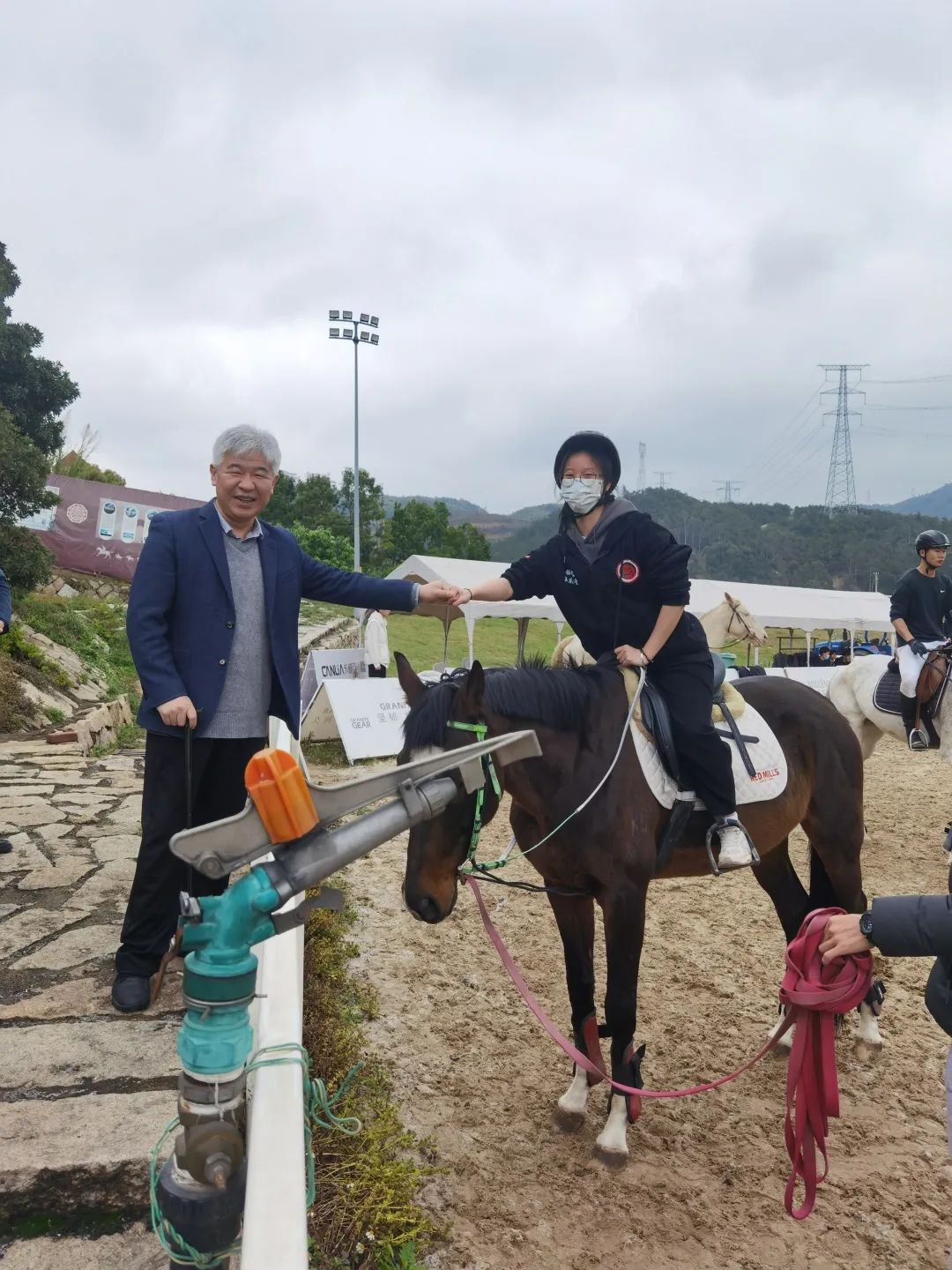 赖海榕书记亲切看望了正在上马术课的师生,并出席了调研座谈会。赖书记详细了解了马术课程开设、马术人才培养以及相关专业毕业生就业等情况。他指出,马术运动独具特色,在推进两岸四地青年对话、交流、合作中具有积极作用。他要求体育学院充分发挥马术人才培养的专业特色,进一步加强与马术俱乐部的联动对接,推动优势互补、共赢发展,着力提升人才培养质量和核心竞争力。他对新校区体育场馆建设提出要求。他要求体育学院、基建处等部门加强联系交流,对标国内外一流体育场馆,高标准规划、高质量建设一批球类、击剑、游泳等体育场馆,为举办或承接高水平运动队训练、高层次体育赛事创设条件,为区域经济社会发展和健康中国战略实施贡献新的力量。