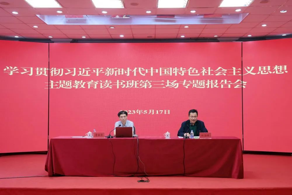 5月17日下午,校党委学习贯彻习近平新时代中国特色社会主义思想主题教育读书班第三场报告会在五马山校区科学楼学术报告厅召开。福建省委党校党史教研部原主任曹敏华教授作专题报告。校党委副书记林海峰主持报告会。在家校领导,全校副处级以上领导干部,校党委主题教育领导小组及其办公室、各工作组成员参加会议。