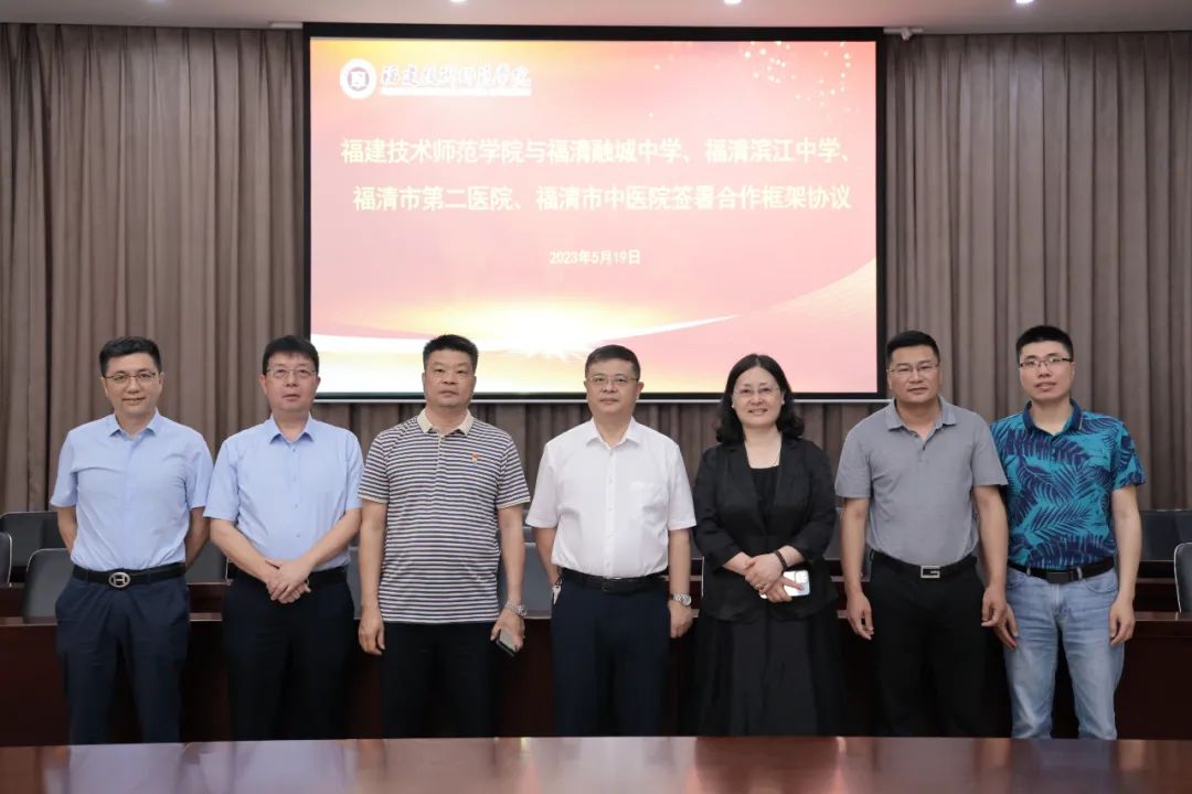 5月19日上午,我校与福清融城中学、福清滨江中学、福清市第二医院、福清市中医院合作框架协议签约仪式在五马山校区图书馆学术报告厅举行。校党委委员、副校长姜兴山,福清融城中学校长叶小美,福清滨江中学校长王为善,福清市第二医院院长林志云,福清市中医院院长林华出席签约仪式。校发展规划处、教务处、校团委主要负责人以及文化传媒与法律学院、教育学院、体育学院、大数据与人工智能学院、电子与机械工程学院、食品与生物工程学院、继续教育学院行政主要负责人等共同参加了签约仪式。