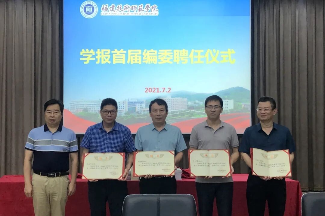 廖深基校长为首届编委会委员颁发聘书,林海峰副书记为首届青年编委颁发聘书。随后,《福建技术师范学院学报》公众号正式上线。